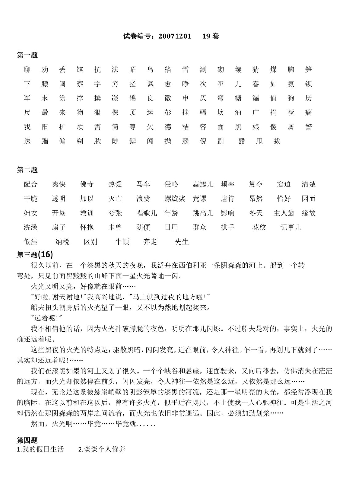 您现在的位置是:首页>文章 文章 普通话测试17-20套 发布人:黄蔚蕖 日期:2022-03-29 11:30浏览次数:3889点赞次数:0 普通话测试17-20套 普通话测试17-20套 很赞哦!0 上一篇 普通话测试16套 普通话测试16套 下一篇 普通话测试21-36套 普通话测试21-36套 相关文章 普通话测试1-10套 普通话测试11套 普通话测试12-13套 普通话测试14套 普通话测试15套 普通话测试16套 普通话测试17-20套 普通话测试21-36套 普通话测试攻略 国家普通话水平考试培训教程