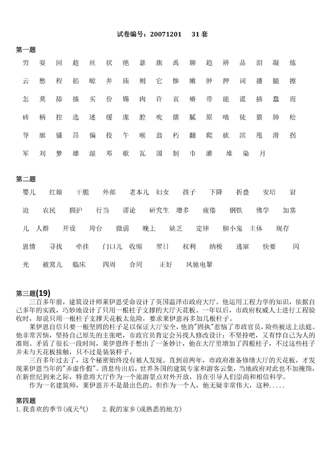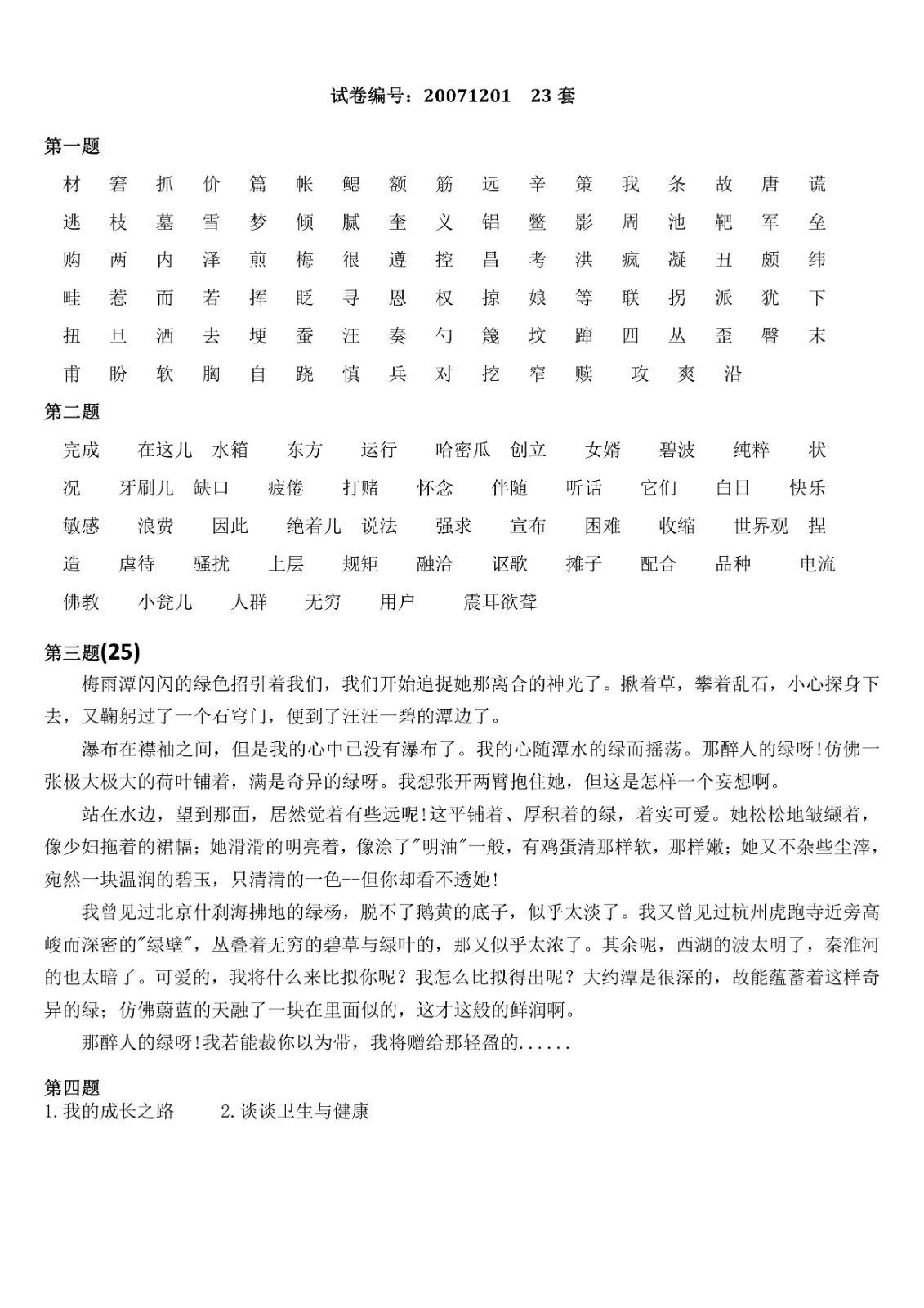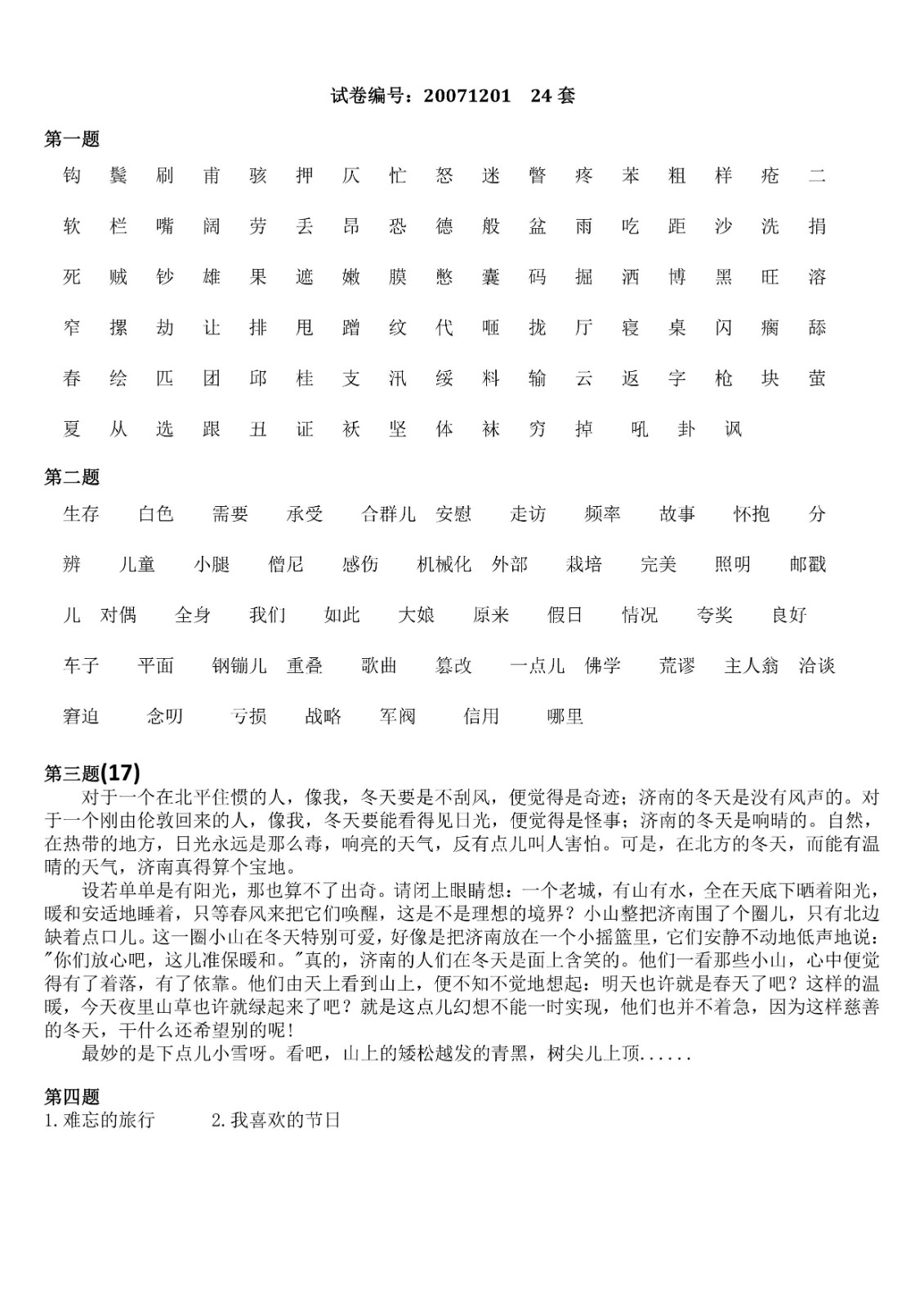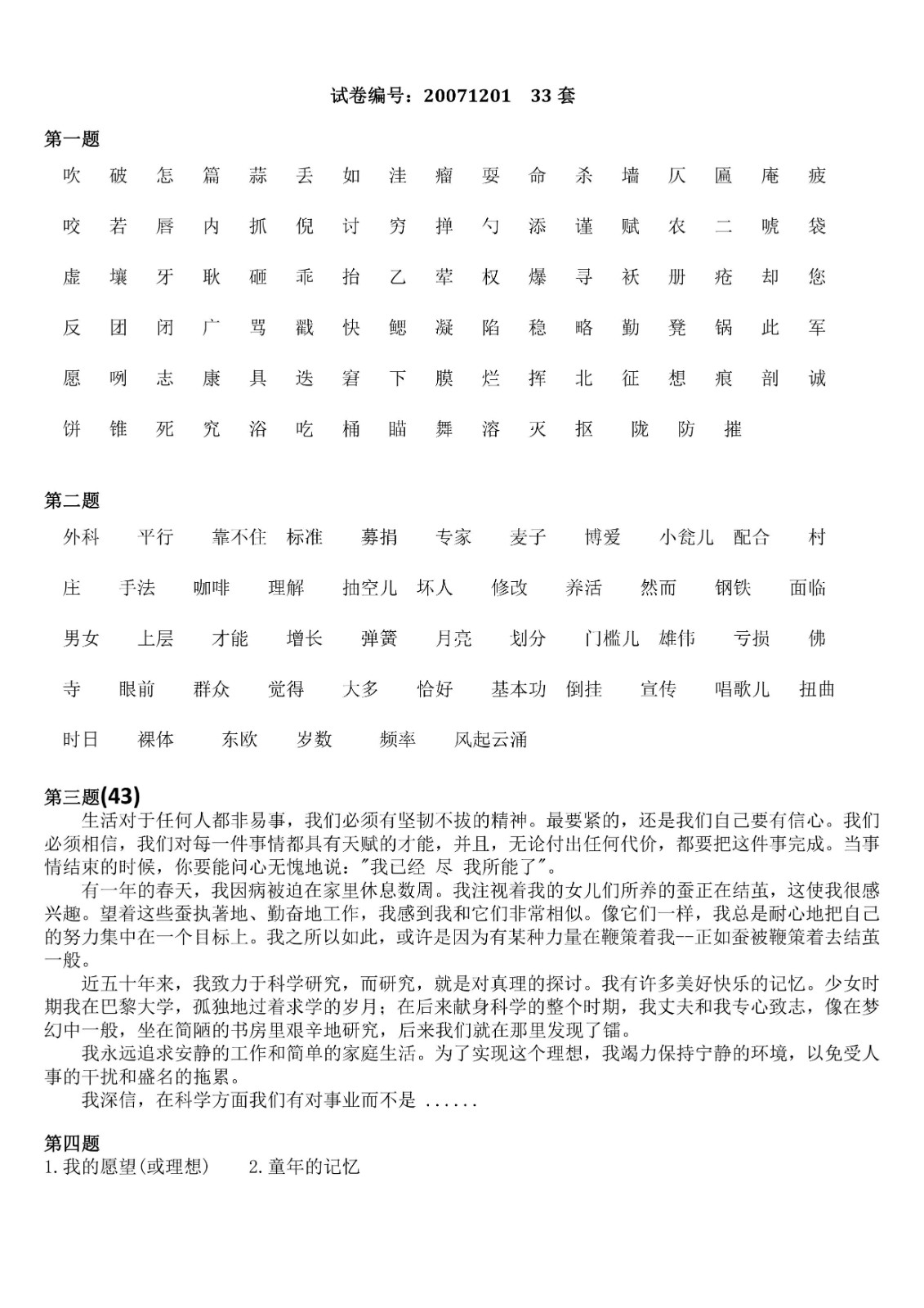 您现在的位置是:首页>文章 文章 普通话测试21-36套 发布人:黄蔚蕖 日期:2022-04-01 07:52浏览次数:4066点赞次数:2 普通话测试21-36套 普通话测试21-36套 很赞哦!2 上一篇 普通话测试17-20套 普通话测试17-20套 下一篇 普通话测试攻略 请自行下载 相关文章 普通话测试1-10套 普通话测试11套 普通话测试12-13套 普通话测试14套 普通话测试15套 普通话测试16套 普通话测试17-20套 普通话测试21-36套 普通话测试攻略 国家普通话水平考试培训教程
