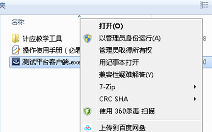 2. 鼠标右键单击测试平台客户端.exe,单击以管理员身份运行安装;![]()