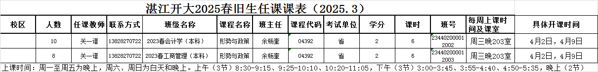 您现在的位置是:首页>班主任 班主任 湛江开大2025年春2303会计学本科、工商管理本科任课安排(3月3日) 发布人:余扬奎 日期:2025-03-03 16:25浏览次数:3822点赞次数:0 湛江开大,湛江开放大学,湛江市财政职业技术学校,湛江市广播电视大学,湛江电大,中专教育,中职教育,成人教育,成人大专,成人本科,官网,教育部电子注册,国际学历绿卡。湛江开放大学(湛江市广播电视大学)办学三十年来... 很赞哦!0 上一篇 湛江开大2024年秋2303会计学本科、工商管理本科任课安排(9月9日) 下一篇 已经没有了 相关文章 关于2023年五一劳动节放假的通知 2023年春入学指南课程作业的流程及答案 关于国家开放大学各专业3月4、5日笔试的通知 2023年春季2303会计学(本科)、2303工商管理(本科)课程表(6月5日) 国开2023年春季学期2303工商管理(本)、会计学(本)课程考试安排表 2023年春季国开课程机考名单 关于公布2303工商管理(本)、会计学(本)需要完成补修课的学生名单 关于2023年端午节放假的通知 国开学生成绩查询、网上申请补考操作步骤 2023年秋季2303会计学(本科)、2303工商管理(本科)课程表(9月5日)