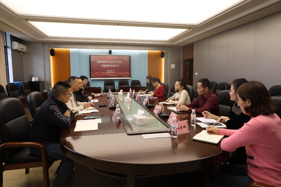 11 月 26 日,中山开放大学继续教育指导服务中心主任黎文忠、教务部部长凌征武等一行 4 人专程赴湛江开放大学开展调研交流。湛江开放大学党委书记、校长黄华兵同志对中山开放大学一行的到来表示热烈欢迎,副校长王旅及学校招生办、教务科、学生工作处等相关部门领导与骨干教师共同参与交流研讨,双方围绕多领域工作展开深入座谈。