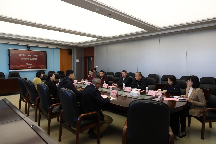 为推进学校进一步转型发展,拓宽学历教育晋升通道,3月10日下午,佛山开放大学党委书记苗磊,党委委员、副校长余涛一行5人到我校交流调研。我校党委书记、校长黄华兵同志和党委委员、副校长吴瑾,党委委员、副校长余扬奎及相关部门领导参加了座谈交流。