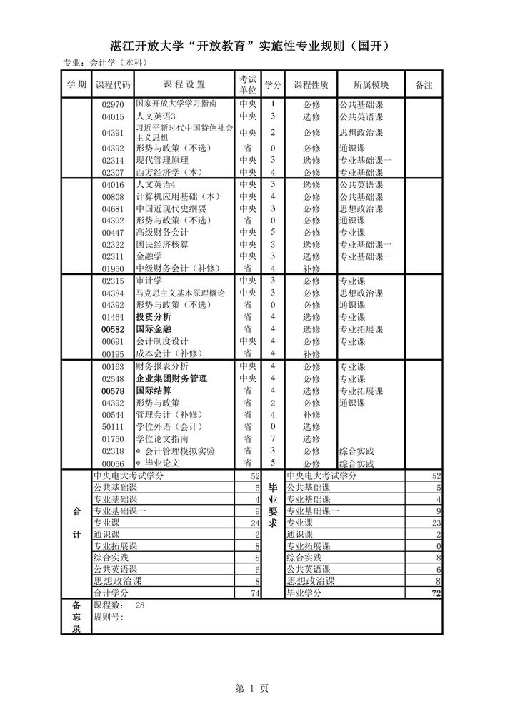 国开本科专业