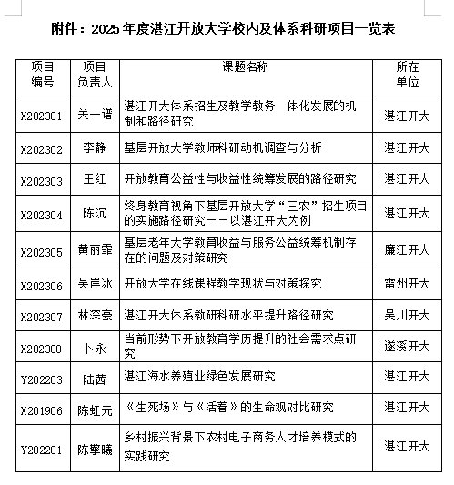 关于开展2025年度湛江开放大学校内及体系科研项目验收工作的通知