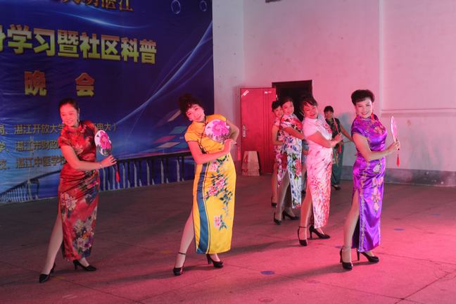 由湛江开放大学教工艺术团带来的乐队表演拉开了晚会的序幕,老师们的倾情演出赢得了观众热烈的掌声,体育场的氛围一下子被点燃,舞台下的观众纷纷用手机亮灯跟随歌声的节奏摇摆,现场成了一片欢乐的海洋随后的快板表演《弟子规》、专业展示《开大学子展风采》以节目的形式把学校的办学特点和重点专业形象地向市民朋友们展现,赢得了阵阵喝彩,舞蹈《雨打芭蕉》、《中国民族风》、《出发》、《四海一家》充满着青春活力和激情,舞蹈《Jamyo Gentleman》、《你好,时光》动作优美,引人入胜,女生独唱《草原的月亮》把晚会带向了高潮,湛江社区大学老年学习班学员带来的舞蹈《好日子》、旗袍表演《徽州美》体现了终身学习、全民学习的魅力。