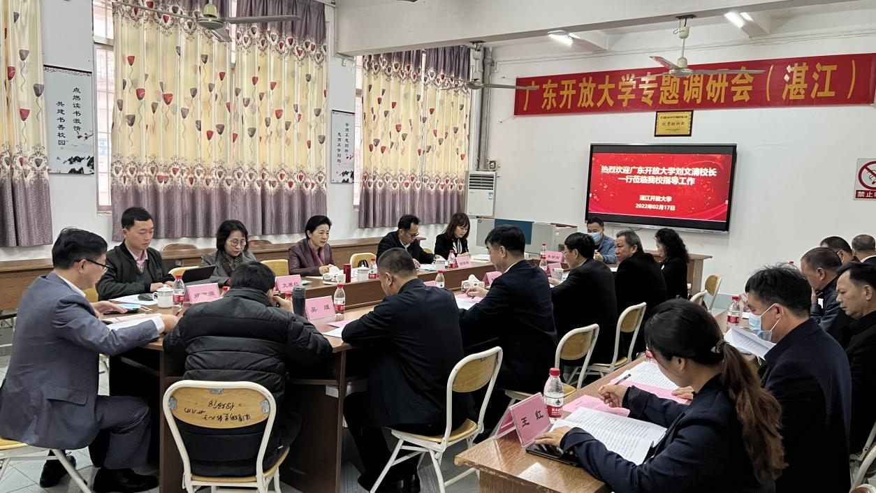 许文滔同志代表我校对省校领导表示热烈欢迎,详细介绍了湛江开放大学体系建设情况、学校转型发展的主要做法和经验。我校王旅副校长、徐闻开放大学李明刚校长、遂溪县开放大学陈华永校长围绕广开招生工作作重点发言。