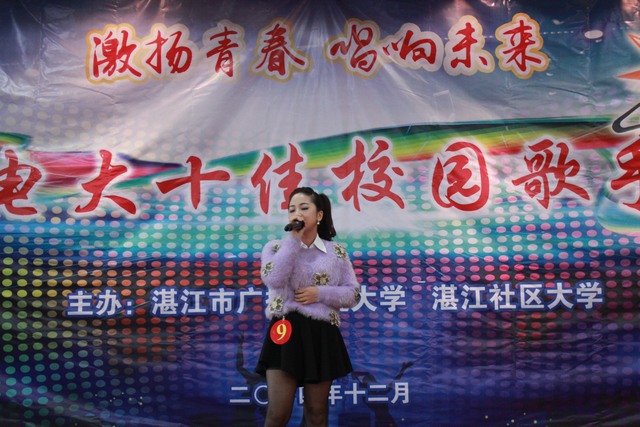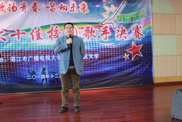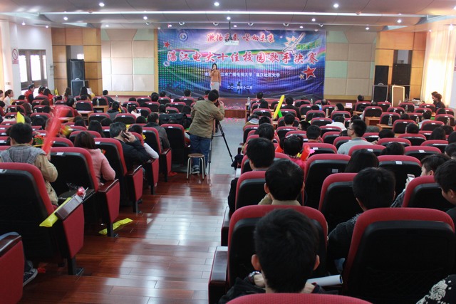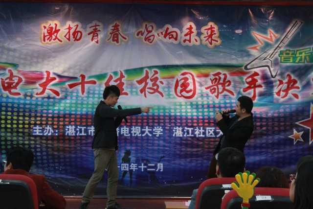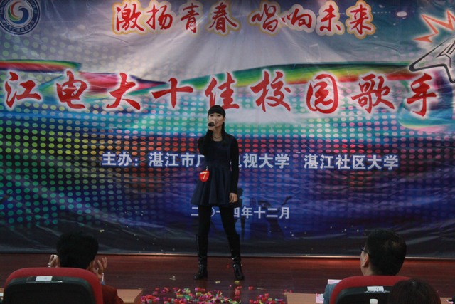 为丰富校园文化生活,服务广大师生,1228日下午,湛江电大一年一度的校园十佳歌手决赛在校本部11楼学术报告厅举行。比赛由学校团委、学生会主办。湛江电大党委书记、校长李连红等校领导、共青团湛江市委副书记??朔壹笆ι偃说匠」劭幢热?。