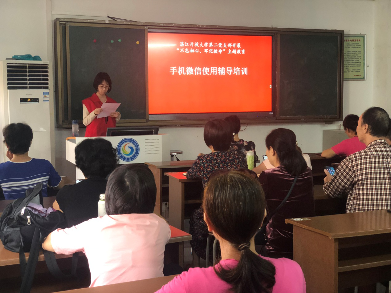 为深入学习贯彻习近平新时代中国特色社会主义思想,进一步贯彻落实"不忘初心、牢记使命"主题教育要求,调动党员为民服务积极性,11月4日下午,我校第二党支部在校本部202教室面向社区大学全体学员开展手机微信基本功能使用辅导培训,社区大学学员们踊跃报名参加。