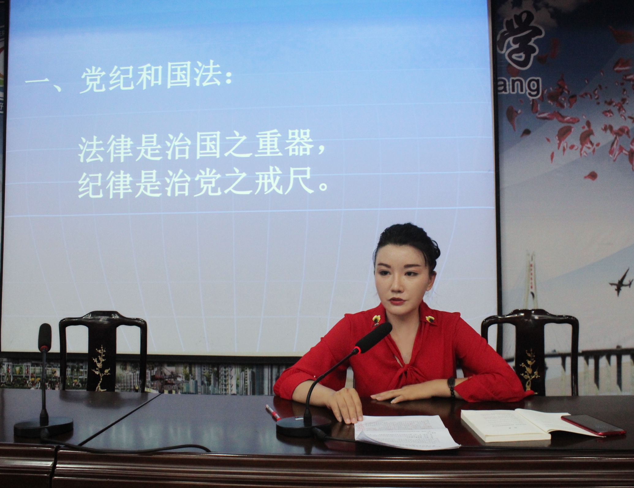 我校召开“不忘初心、牢记使命”主题教育警示教育会议 纪委书记江宇静同志为全校教职工上党章党规党纪专题党课