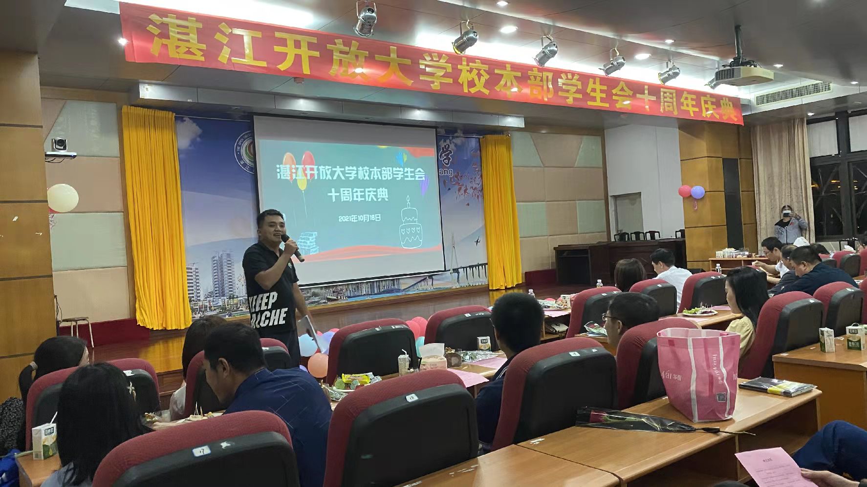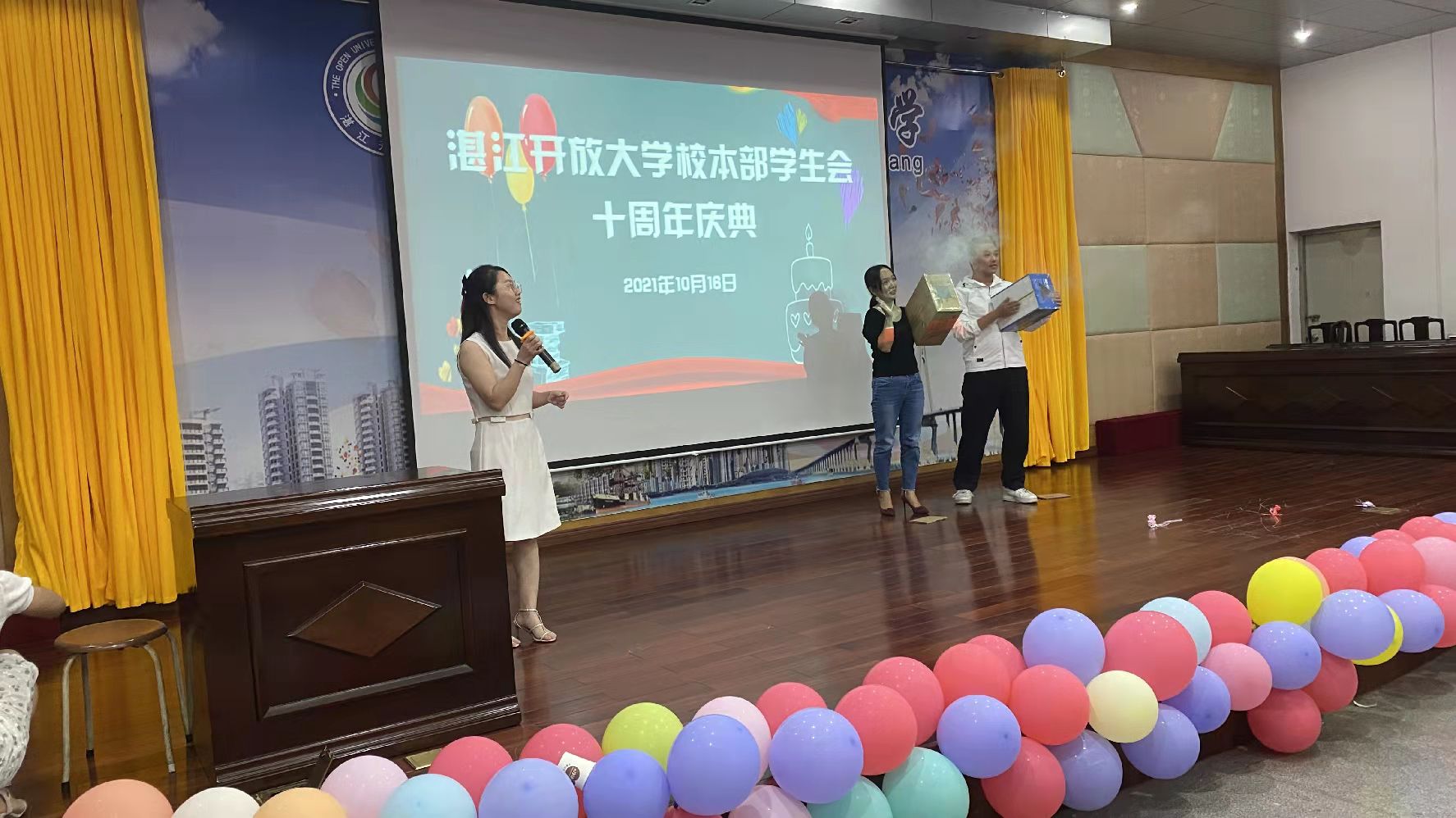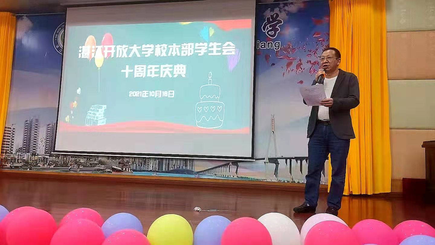 20211016日晚8点,湛江开放大学校本部团总支学生会10周年庆典暨主题团日晚会在校本部11楼多功能厅隆重举行!学校领导、老师及学生会全体成员齐聚一堂,共同分享来自这个大家庭的幸福和喜悦。