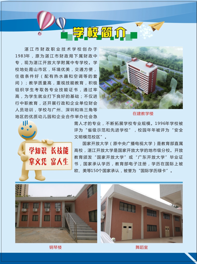 湛江开大,湛江开放大学,湛江市财政职业技术学校,湛江市广播电视大学,湛江电大,中专教育,中职教育,成人教育,成人大专,成人本科,官网,教育部电子注册,国际学历绿卡。湛江开放大学(湛江市广播电视大学)办学三十年来...