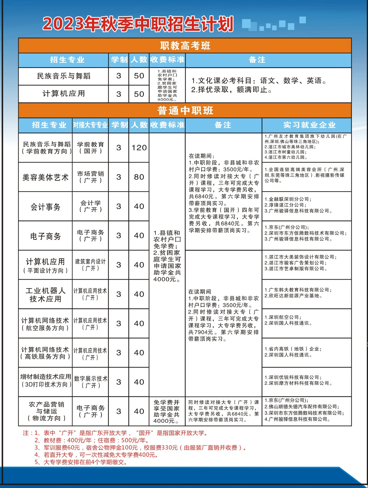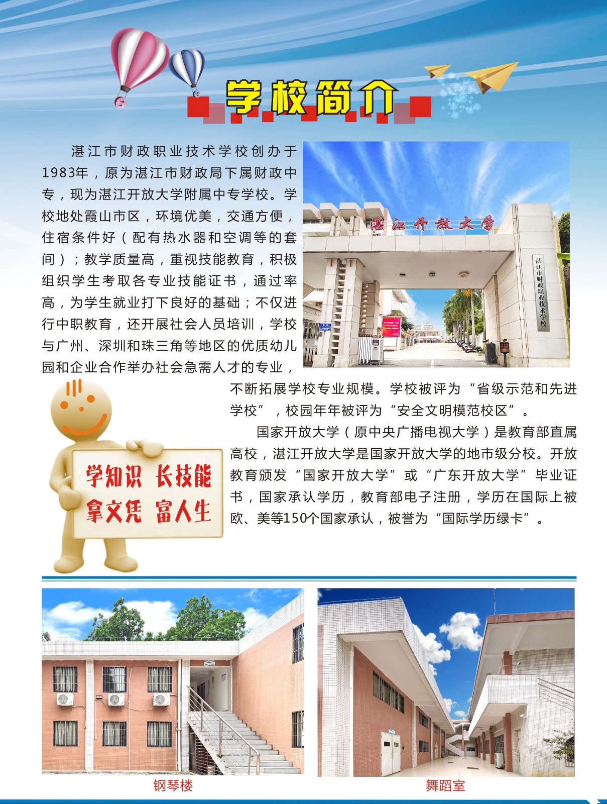 您现在的位置是:首页>财政中专 > 招生就业 > 招生简章 招生简章 湛江市财政职业技术学校2023年秋季招生简章 发布人: 日期:2023-05-23 09:12浏览次数:12623点赞次数:3 湛江开大,湛江开放大学,湛江市财政职业技术学校,湛江市广播电视大学,湛江电大,中专教育,中职教育,成人教育,成人大专,成人本科,官网,教育部电子注册,国际学历绿卡。湛江开放大学(湛江市广播电视大学)办学三十年来... 很赞哦!3 上一篇 湛江市财政职业技术学校2024年秋季招生简章 下一篇 湛江市财政职业技术学校2022年秋季招生简章 相关文章 2016年秋季招生正在火热进行中,欢迎大家咨询报读 2017年秋季招生正在火热进行中,欢迎大家咨询报读 2018年秋季招生正在火热进行中,欢迎大家咨询报读 2020年秋季招生正在火热进行中,欢迎大家咨询报读 湛江市财政职业技术学校2022年秋季招生简章 湛江市财政职业技术学校2023年秋季招生简章 湛江市财政职业技术学校2024年秋季招生简章
