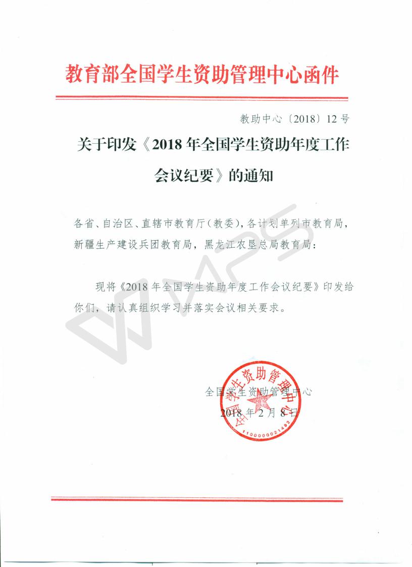 (教助中心[2018]12号)关于印发《2018年全国学生资助年度工作会议纪要》的通知