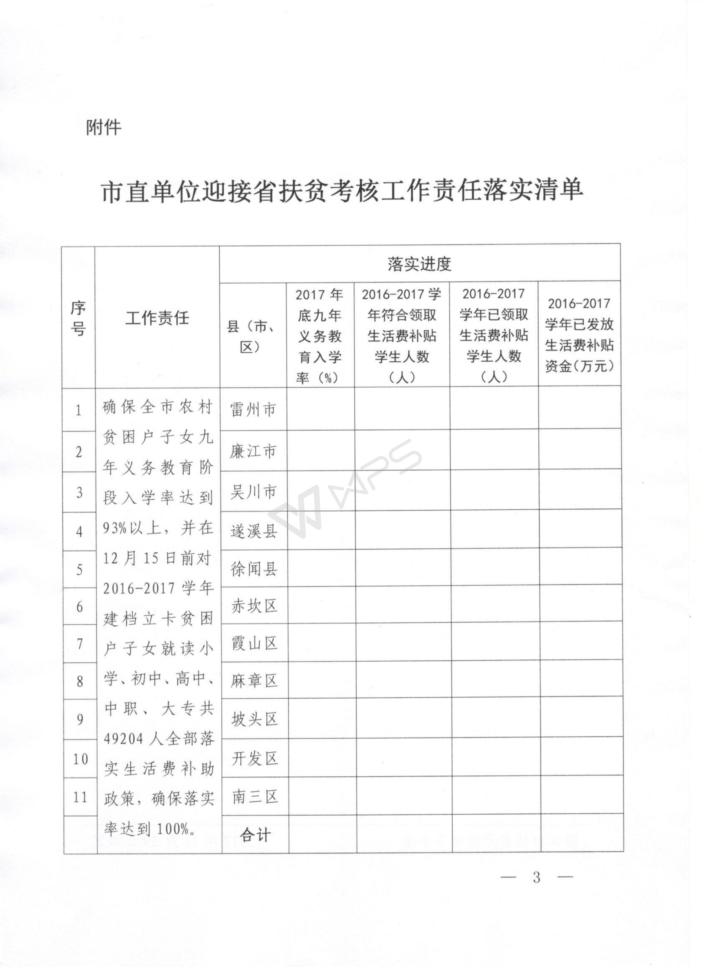 【市教育局】湛扶组〔2017〕33号 关于抓紧做好迎接2017年省扶贫开发工作成效考核有关工作的通知
