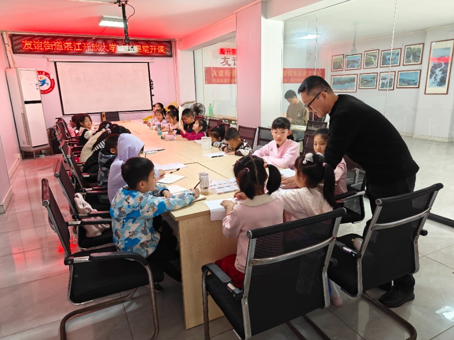 为丰富社区儿童课余生活,培养艺术兴趣,湛江开放大学、湛江社区大学联合友谊街道综合文化站精心策划的“童心绘梦”公益绘画班于3月23日开课。