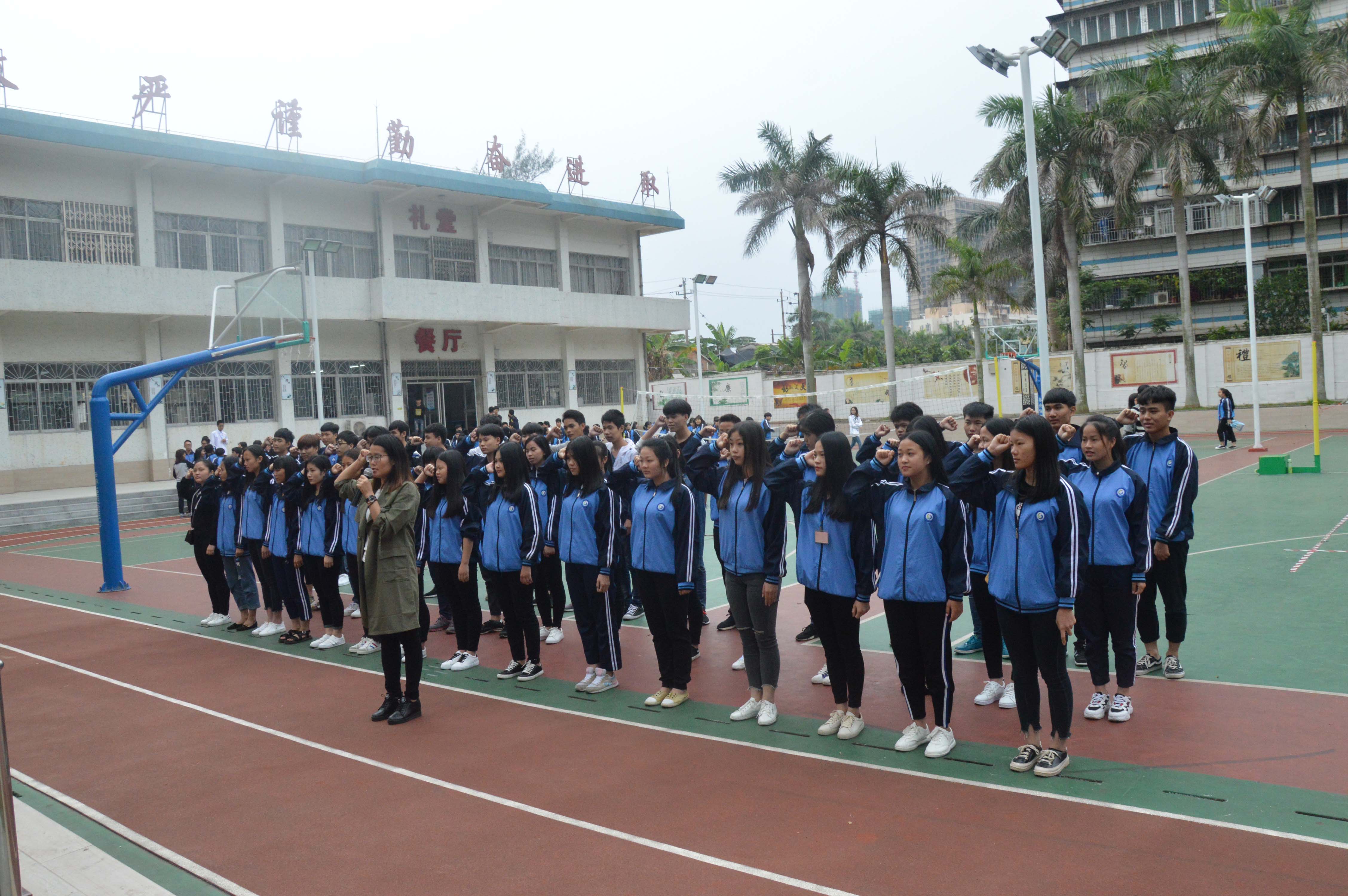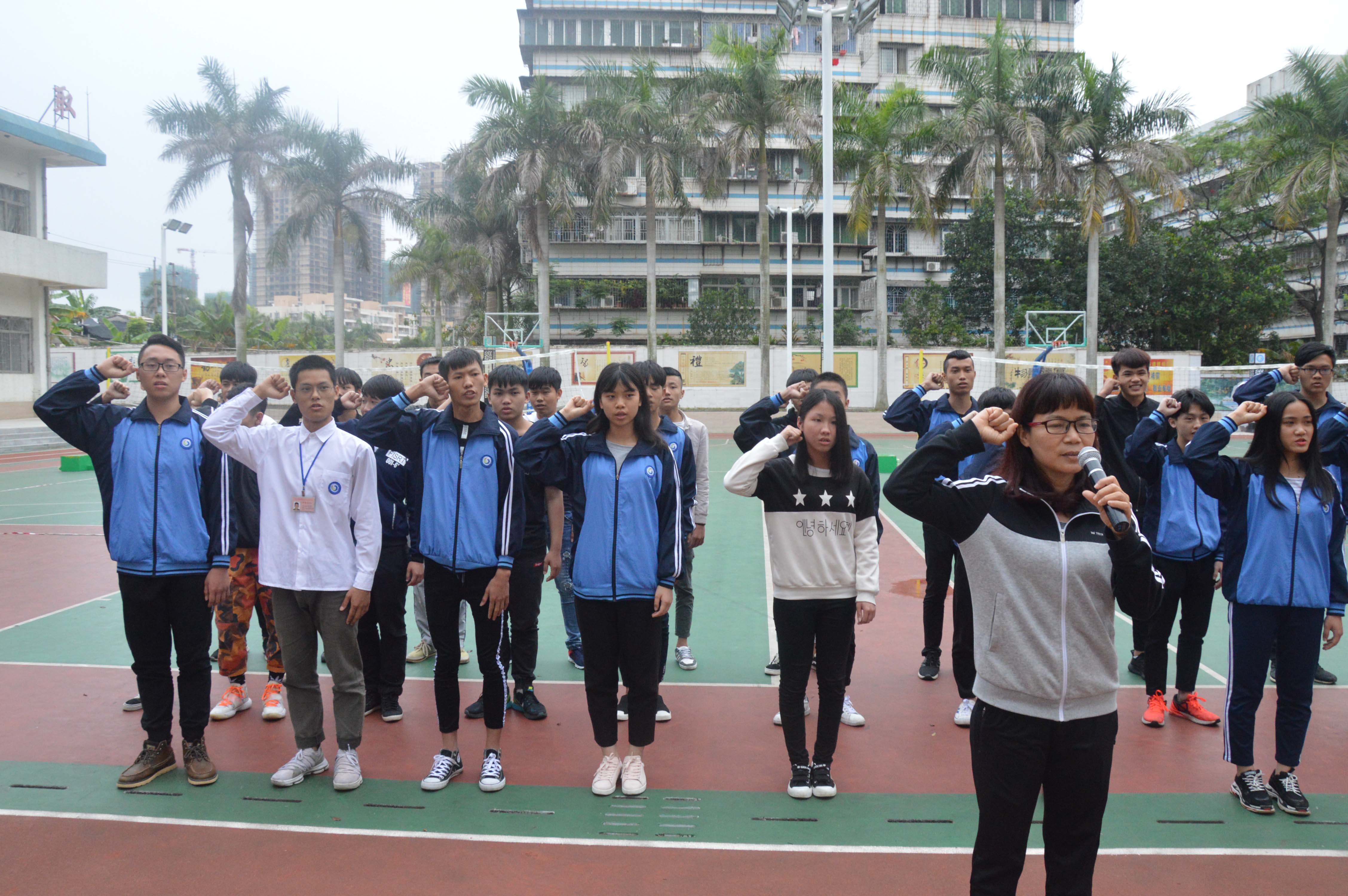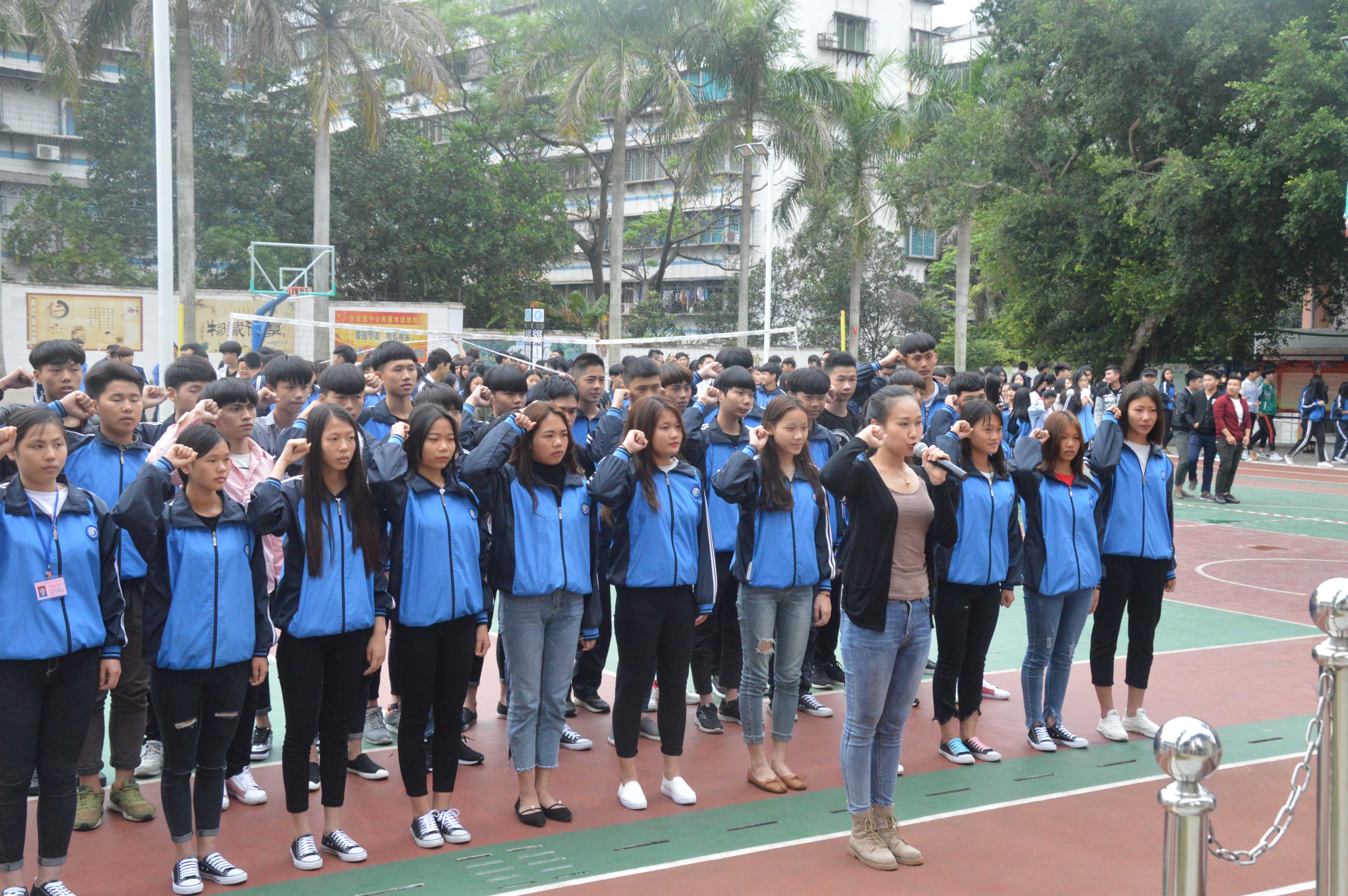 4月16日下午,湛江开放大学主校区(湛江市财政职业技术学校)校纪校规宣誓仪式在操场隆重举行。中专部林锦主任、李灿坤副主任、谢伟强副主任、各班主任以及全体同学们参加了本次大会。