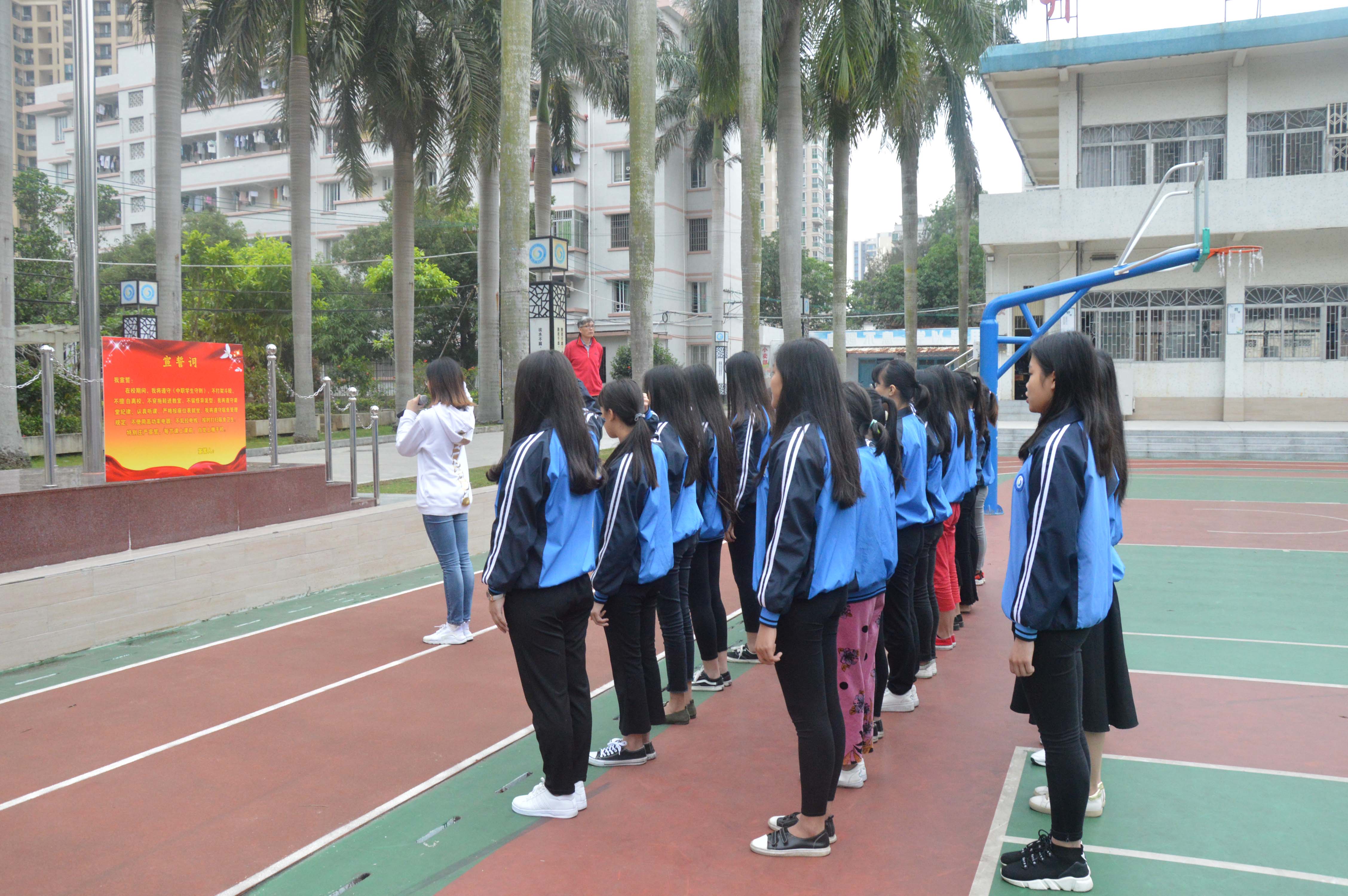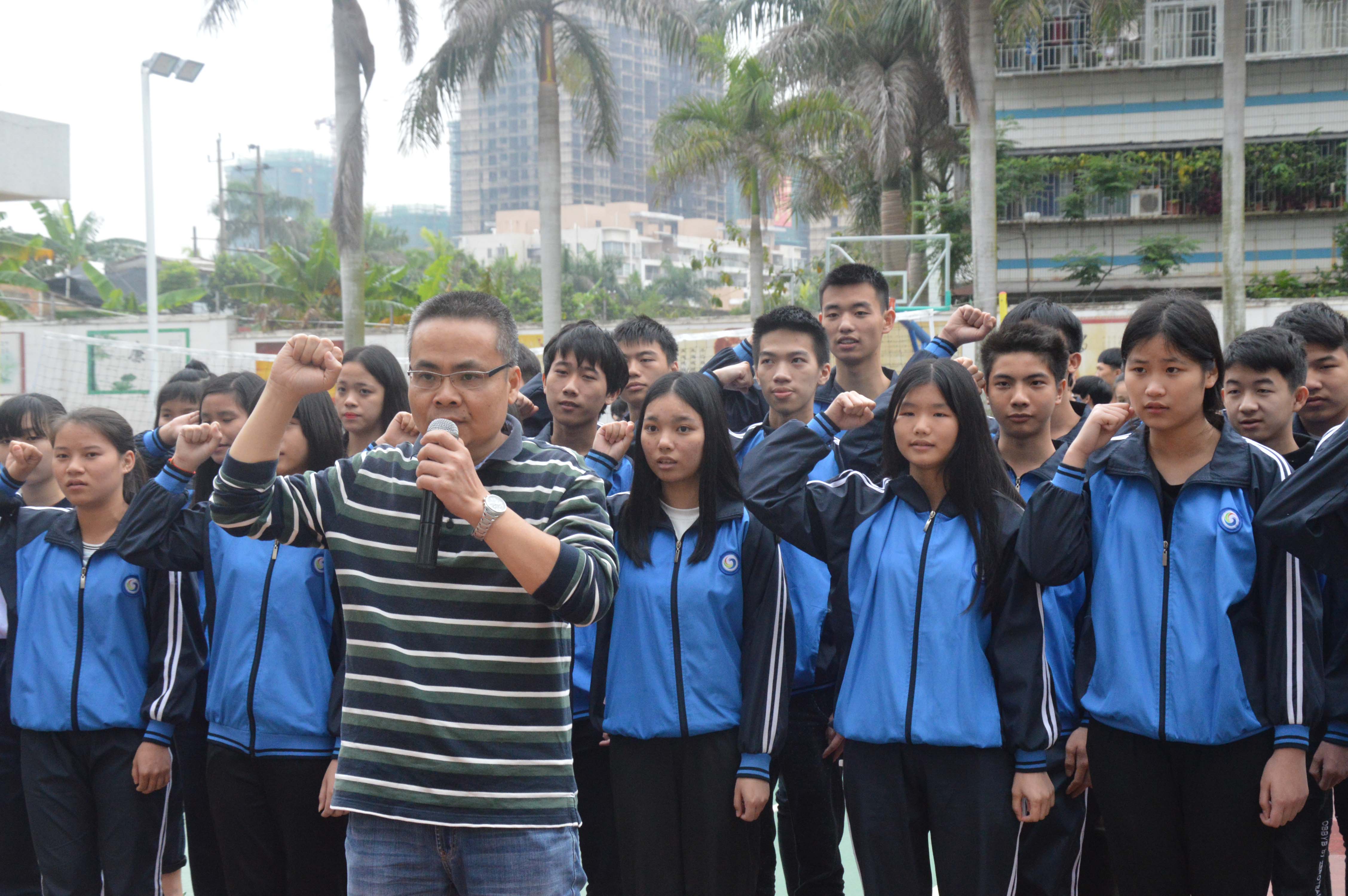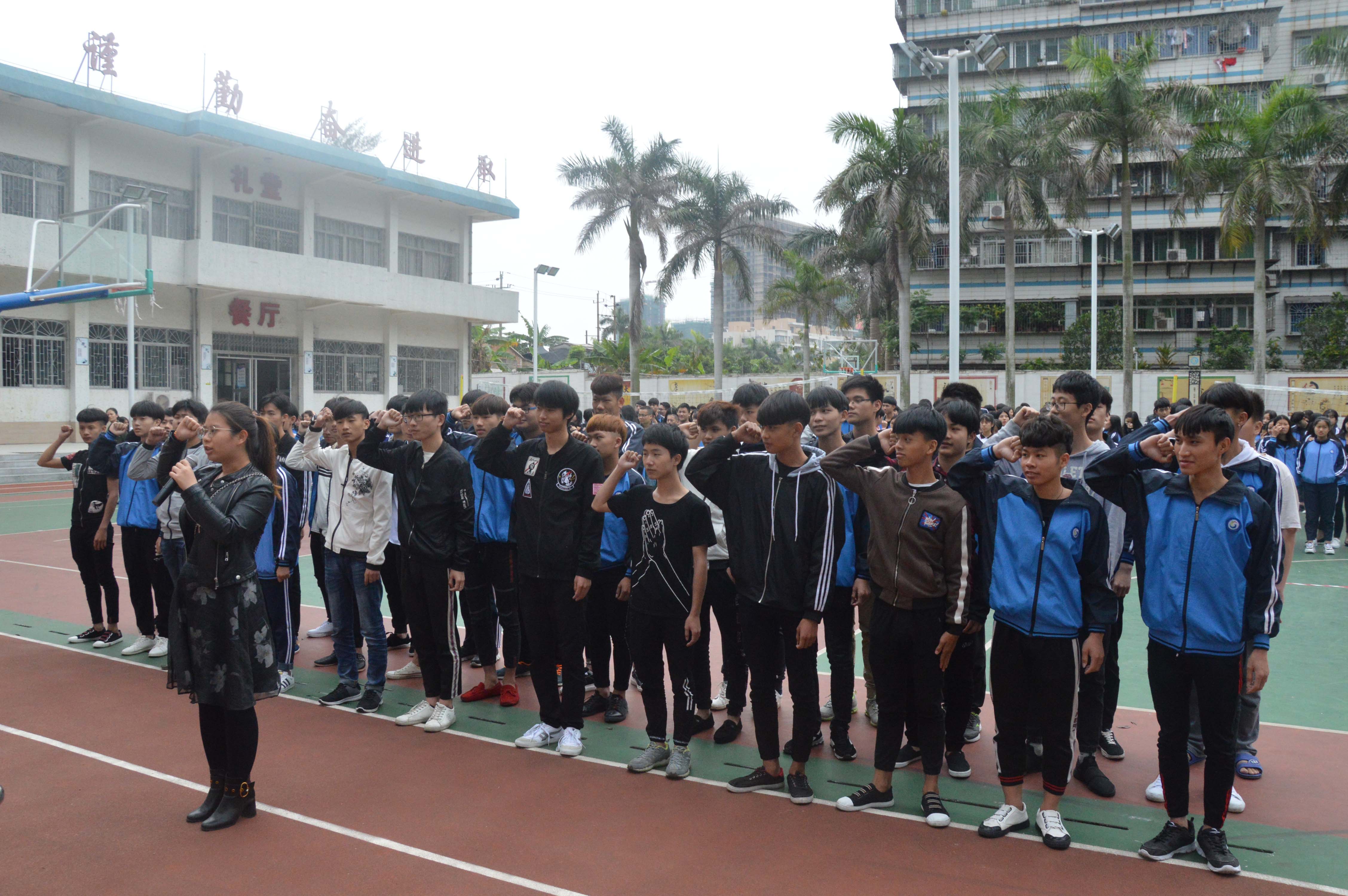 4月16日下午,湛江开放大学主校区(湛江市财政职业技术学校)校纪校规宣誓仪式在操场隆重举行。中专部林锦主任、李灿坤副主任、谢伟强副主任、各班主任以及全体同学们参加了本次大会。