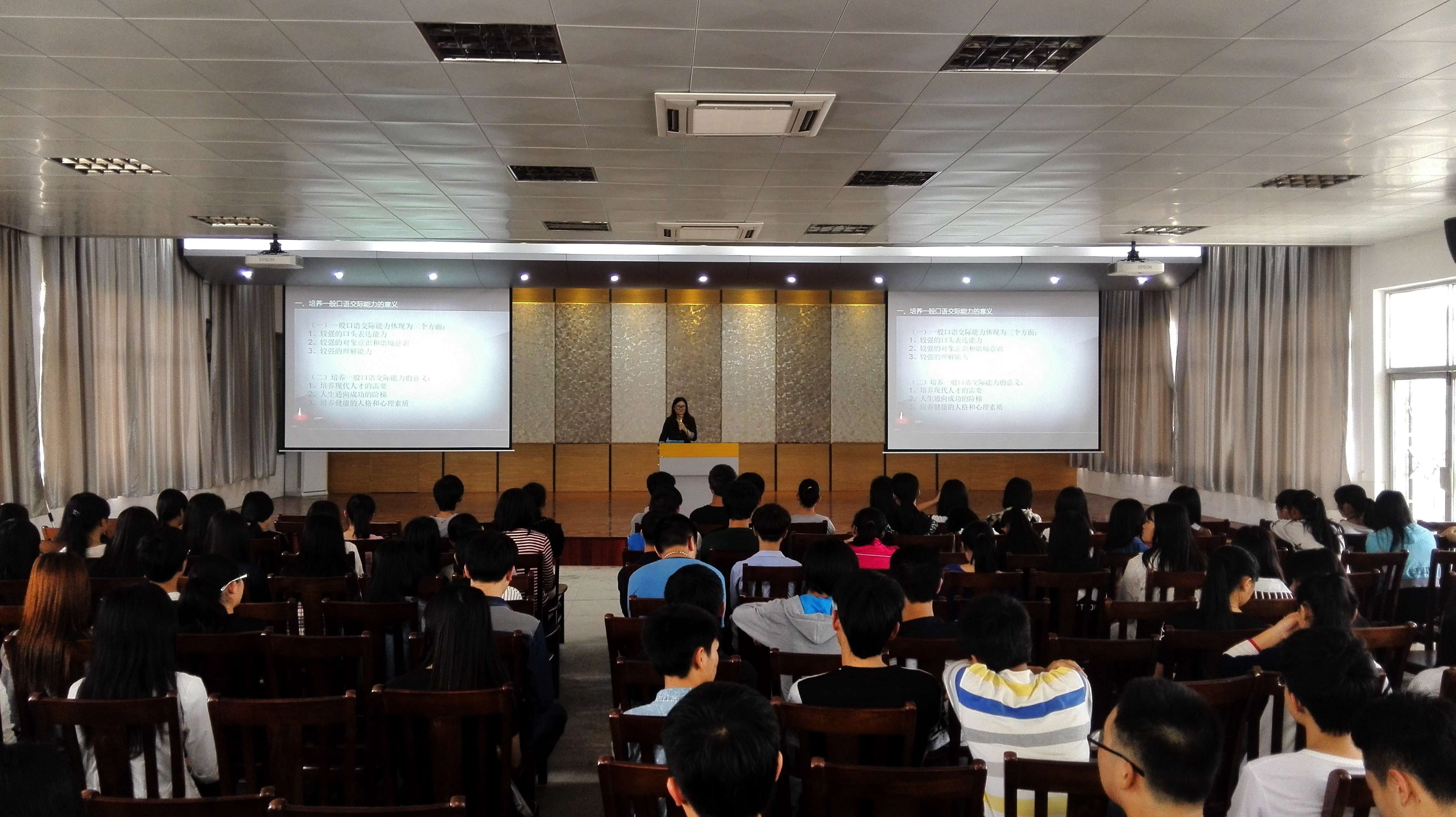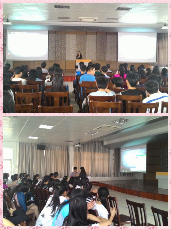 为了提高同学们的口语交际能力,主校区于2015年3月31号下午3时在礼堂举办了"一般口语交际能力训练"主题讲座。本次讲座由马建梅老师主讲。马建梅老师给同学们阐明了培养一般口语交际能力的三个重要意义:第一,有利于培养现代人才第二,口语交际能力是人生通向成功的阶梯第三,有利于培养健康的人格和心里素质。