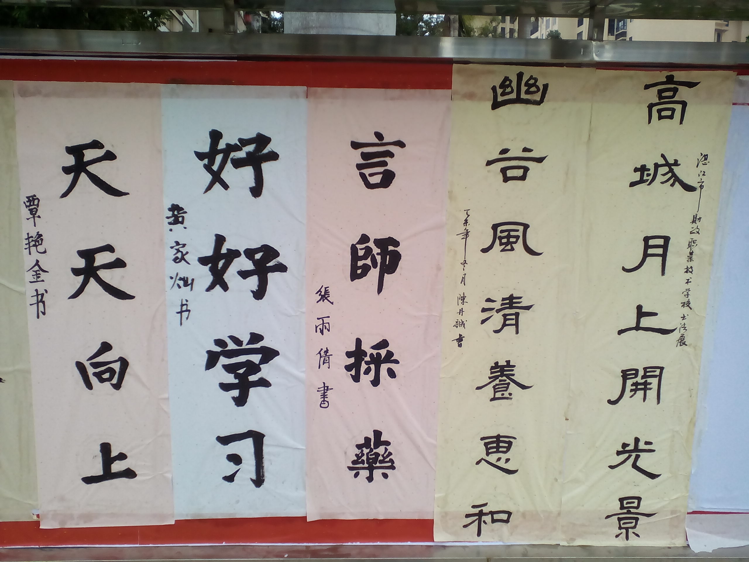 12月28日下午,主校区举办师生书法作品展活动。本次师生书法作品展活动由主校区书法协会主办。全部参展优秀书法作品均来自主校区老师和学生之手,这是我校成立书法兴趣班的重要成果,又是我校教学改革的一个重要举措。