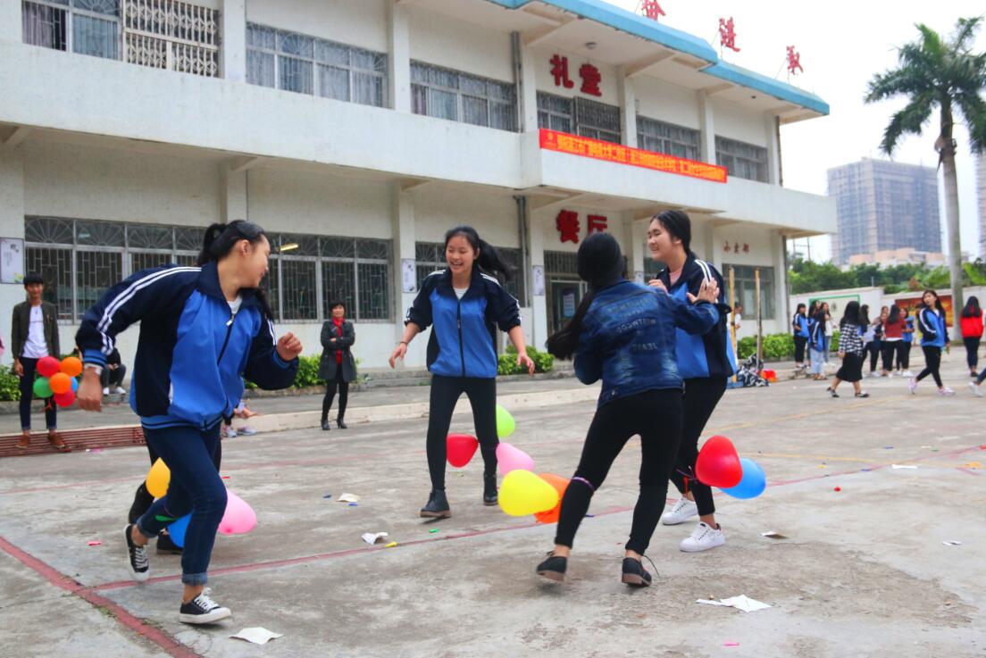 下午16时,在学生会主席谭永飞的主持中,各项活动陆续展开。首先由学习部和生活部联手主持的踩气球比赛拉开了序幕,比赛十分激烈,此项比赛打破了人们对女性娇弱的错误看法,充分反映了女性青春活跃,团结合作的精神。其次在公关部和文娱部的组织下,"你做我猜"游戏也展开了精彩的对博,显示了我校女生多元表达能力和难得的默契。接着是体育部带领的"踢键子"比赛,展现了女生肢体协调的美姿和跳跃的青春。最后,在宣传部和组织部的协作下,"萝卜蹲"游戏成了一道可爱靓丽的风景,令人止步不前。