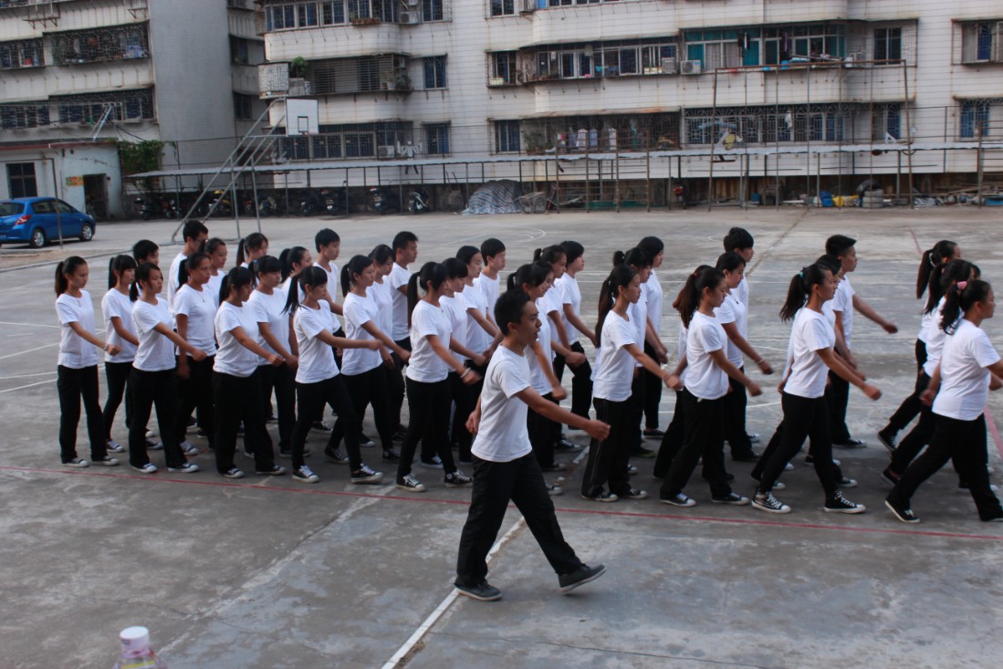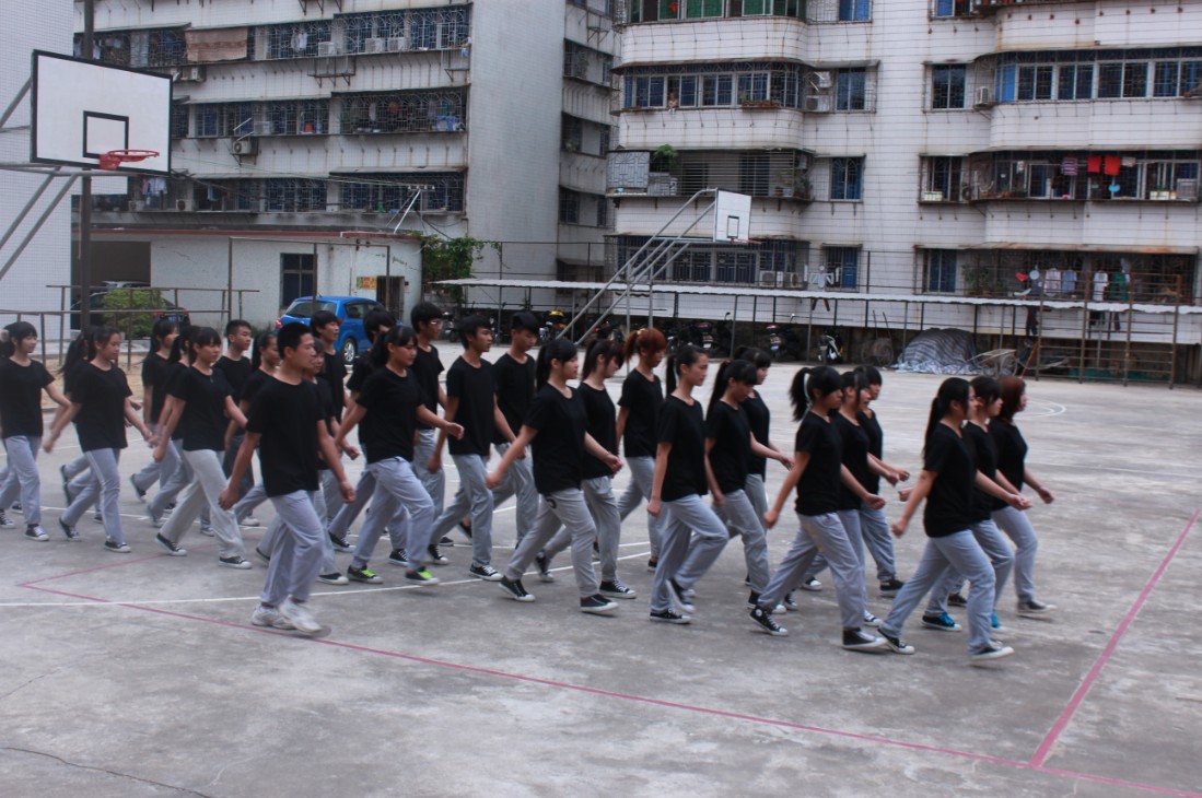 迈着整齐的步伐、喊着嘹亮的口号入场