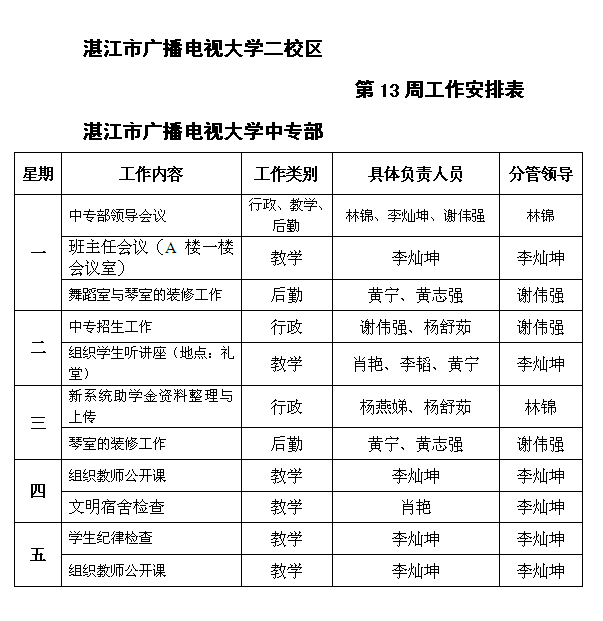 - 主校区(湛江市财政职业技术学校)2013-2014年度第一学期课程表