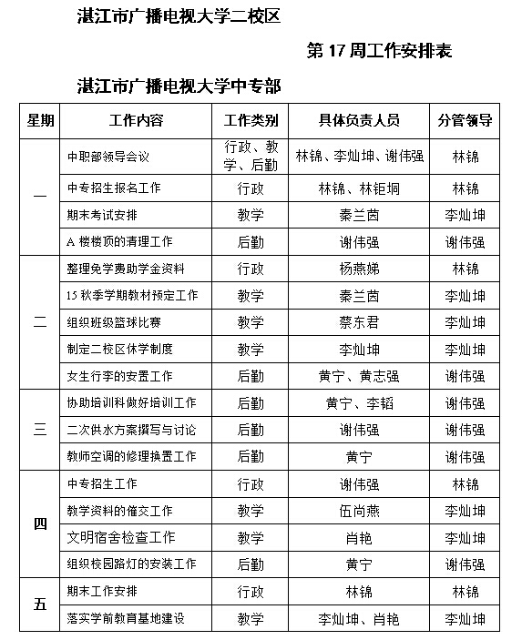 - 主校区(湛江市财政职业技术学校)2013-2014年度第一学期课程表
