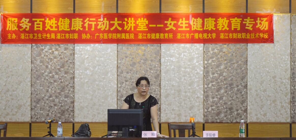 当今社会上女生遇害事件越发频繁,很多女生涉世未深,缺乏自我?;ひ馐?,因此遇到危险惊慌失措,不能很好地?;ぷ约骸M贝τ谇啻浩诘呐?,性生理发育还没有完成成熟,而且由于传统性观念的影响,她们对性知识还不是很了解。为了使主校区女生身心得到更好的发展,更好地?;ぷ约海?/span>2015年9月22日下午4:30,由湛江市卫生计生局和湛江市妇联主办,广东医学院附属医院、湛江市健康教育所、湛江市广播电视大学和湛江市财政职业技术学校协办的"服务百姓健康行动大讲堂--女生健康教育专场"讲座如期在主校区举行。