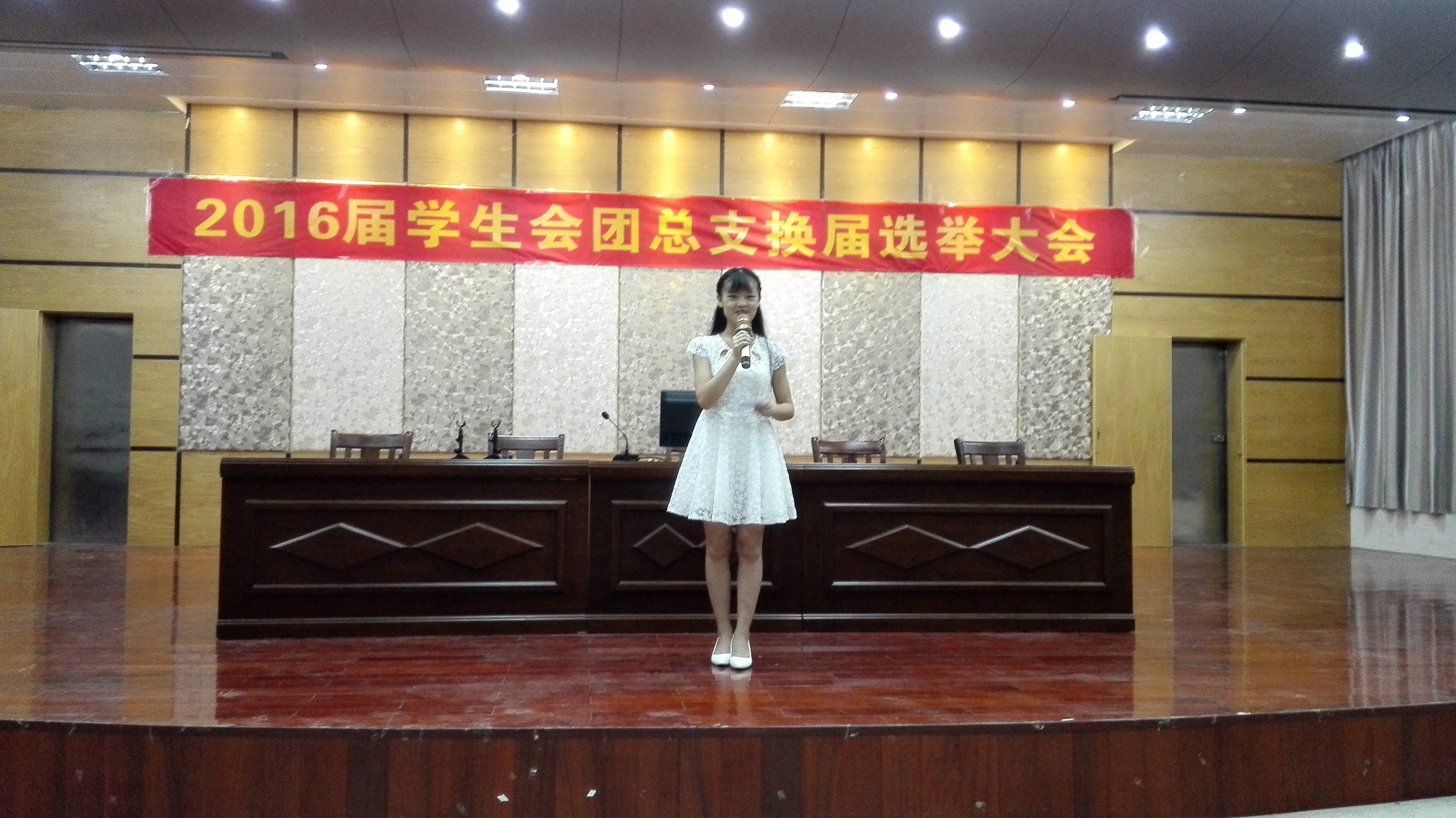 2016年4月14日晚上七点半,主校区(湛江市财政职业技术学校)2016届学生会团总支换届竞选大会在主校区礼堂如期举行。