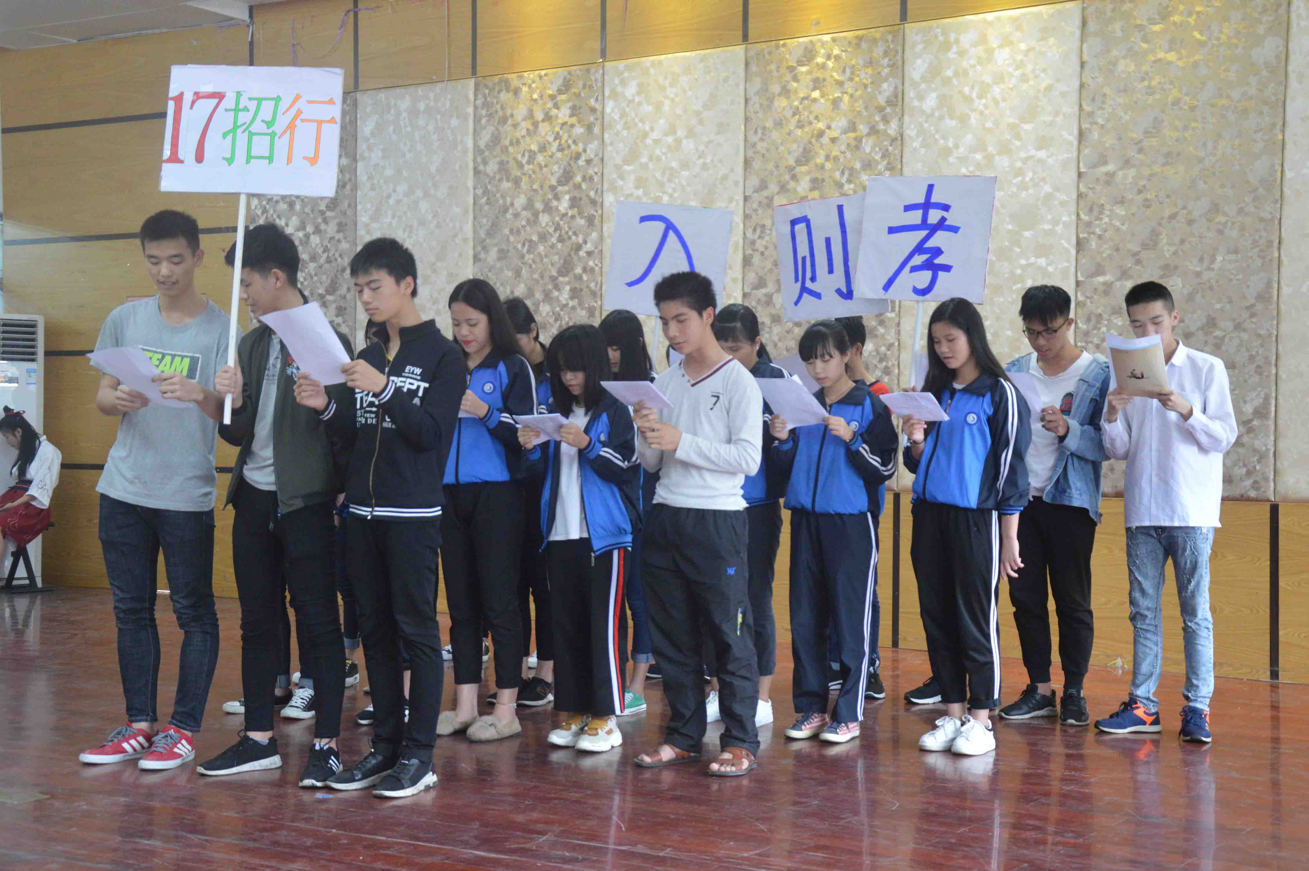 "弟子规,圣人训,首孝悌,次谨信……"为了营造浓厚的读书氛围,激发学生读背《弟子规》的浓厚兴趣,4月27日下午,湛江开放大学主校区(湛江市财政职业技术学校)举行"书香满校园,美德伴成长"2018年班级《弟子规》诵读表演比赛,学校领导和全体师生参加了活动。