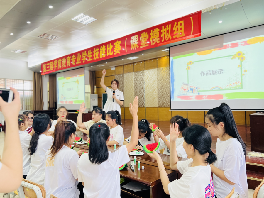 各组选手满腔激情,比赛现场高潮迭起,亮点纷呈,展现了我校学前教育专业学生良好的精神风貌。此次比赛提升了我校学前教育专业实践教学水平,提高学生理论及实践能力,让更多学生增强职业能力、树立职业理想、坚定职业信念,对提升人才培养质量发挥了极其重要的作用。