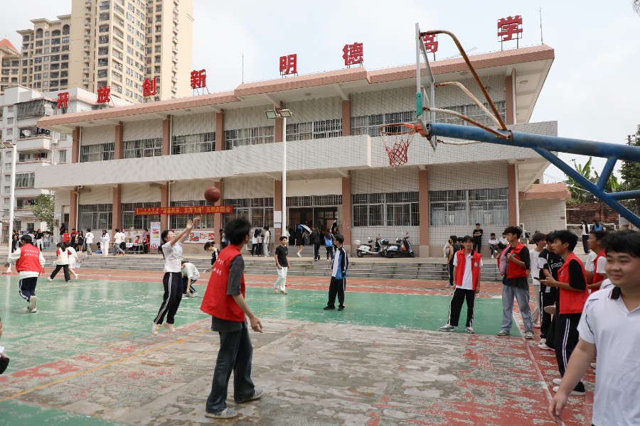 游戏互动区人气爆棚,“投篮大挑战”成为篮球爱好者的竞技舞台,选手们凝神聚力、精准投射,展现矫健身姿;“你画我猜接力”妙趣横生,师生们用灵动的肢体语言与默契配合,将词语转化为欢乐的互动;“两人三足”项目中,搭档们相互扶持、齐声呐喊,在整齐的步伐中彰显团结协作的力量,现场加油声、欢笑声此起彼伏。