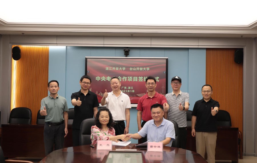 5月28日,台山开放大学党支部书记、校长黄国忠一行8人来我校进行交流研讨,并和我校签订合作开展中央广播电视中等专业学校学历教育办学协议。我校党委书记、校长黄华兵,党委委员、副校长王旅,党委委员、副校长余扬奎和相关部门领导参加了座谈交流。