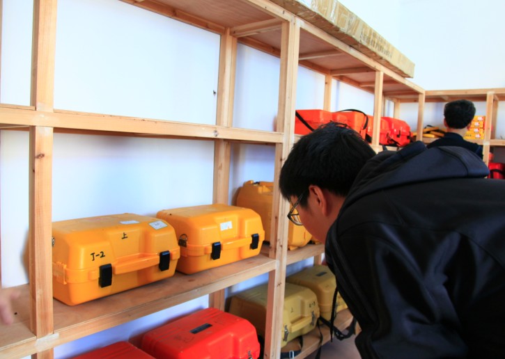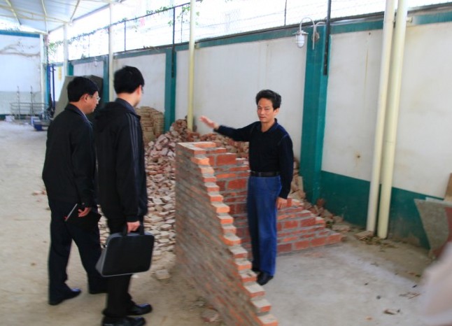 我校建筑专业孙老师在细心观察贵校的教学设备
