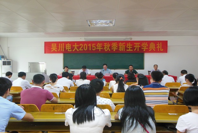 [吴川电大陈耀 林运报道]9月26日,吴川市广播电视大学2015年秋季新生开学典礼在教学楼204教室隆重举行,党校常务副校长、支部书记,电大校长李向明等校领导、中层以上干部以及班主任出席,典礼由江丰副校长主持。
