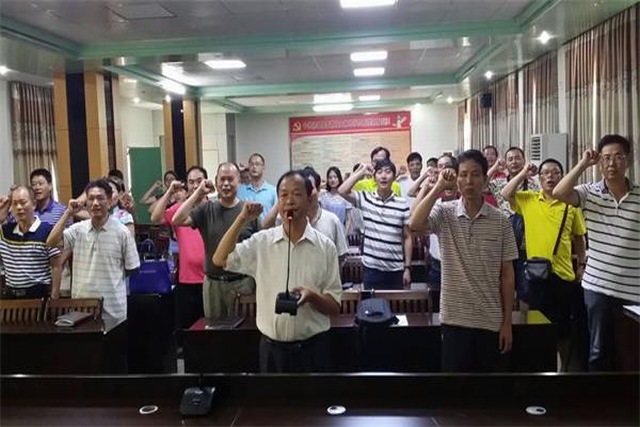为了贯彻落实"两学一做"学习教育,为进一步增强党组织的凝聚力和战斗力,激励党员坚定爱党、信党、跟党走的理想信念,增强党员的责任意识和使命感,谨记自己的誓言,牢记自己是一名共产党员,在以后的工作和生活中发挥党员的先锋模范作用,徐闻电大7月12日以"感党恩、动党情、强党性、树党风"为主题进行此次重温入党誓词活动。