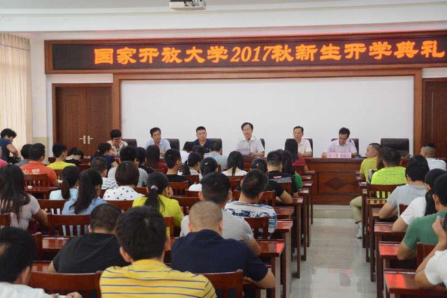 [遂溪电大 陈 峭报道]9月30日上午九时,遂溪电大8号楼一楼大会议室座无虚席,249名国开新生参加了2017年秋季简短而隆重的开学典礼。大会由分管教学的王春副校长主持,梁广仁校长及其他班子成员、部分科室领导、班主任、科任老师一同出席典礼?;嵘?,梁广仁校长作了热情洋溢的讲话。他首先代表学校向新学员表示热烈欢迎和衷心祝贺,接着向新学员介绍了国家开放大学(电大)的历史沿革以及学校的基本情况,最后对新学员提出几点殷切期望。他提出:第一,要珍惜宝贵的学习机会第二,要培养自主学习的习惯第三,要自觉遵守各项规章制度第四、要坚持诚信学习、诚信考试,自觉维护国开学员的荣誉和形象。随后,教务处陈峭主任向新学员介绍了新班班主任和布置新学期学习工作,简述国开学习、作业、考试、缴费等流程,希望学员树立信心,熟悉流程,掌握规律,开展有效学习?;岷?,科任教师还给新生进行国开入学指南教育。据统计,本校今季共招生249人,其中本科51人,专科198人。