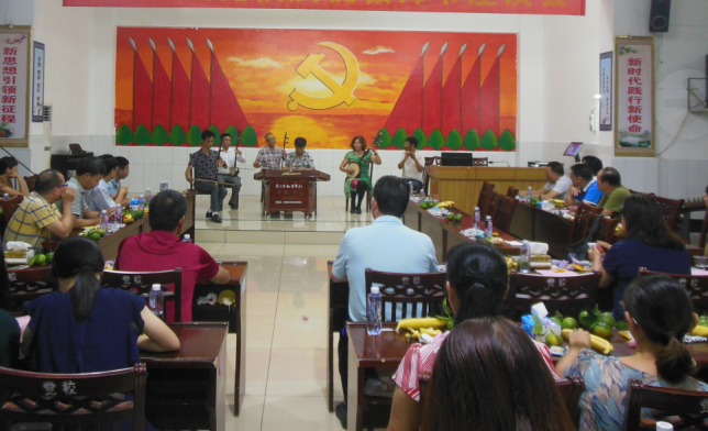 座谈会后,进行了才艺表演环节,干部教职工与嘉宾们用各自精心准备的节目共同庆祝教师节。首先,蒋冠霞老师深情朗诵的诗词《师说》拉开了序幕,紧接着4名老师依次朗诵了李向明创作的大海系列散文,展现了电大教师积极向上的精神风貌。随后,广东音乐演奏组带来的扬琴和高胡合奏、岭南春书画院沈志毅老师的吉他弹唱以及郭晓萍老师的古筝演奏,一次次将活动推向高潮,现场不时响起一阵阵掌声。最后,才艺表演在春晖学校赖晓桃老师电子琴弹奏的《每当我走过老师窗前》的优美琴声中结束。