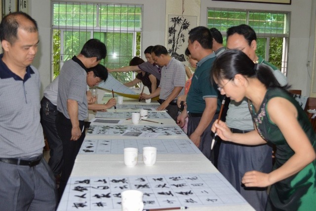 [吴川电大 陈耀]为了夯实教学硬实力和丰富教职工的文化生活。近日,吴川电大为骨干教师和各室(处)配备了12台手提电脑。经过两个多月的筹备,24日上午,我校成立书画室,邀请了多位退休书画爱好者参加,同时展出了10多幅本校教职工的优秀书画作品。现场同志们有的大笔挥毫,洋洋洒洒有的临摹字帖,丝丝入扣,好一派热闹的"舞文弄墨"场景。