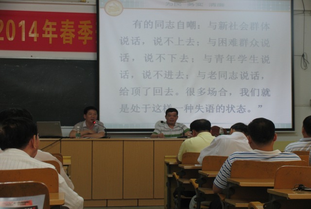 讲座从历史的角度和现实的视角对群众路线进行了很好的阐述,内容丰富,材料充实,给学校领导干部和党员上了很有教育意义的一课,对于学??购?/span>第二批党的群众路线教育实践活动,具有极大的指导意义。讲座结束后,陈荣双副校长代表学校党支部表示一定认真贯彻落实上级党委要求和根据学校实际制定的《关于开展党的群众路线教育实践活动的实施方案》,要求全校党员干部积极参与,带头践行,团结一心,凝聚力量,确保我校党的群众路线教育实践活动工作取得实效,并成为促进学校发展,让师生满意的工程。