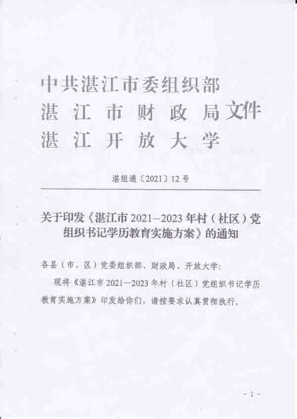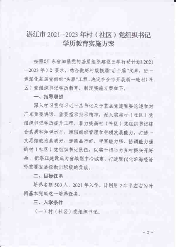 中共湛江市委组织部、湛江财政局委托我校开展湛江市2021-2023年村(社区)党组织书记学历提升项目