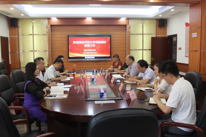 为了加强兄弟开放大学交流和学习,促进学校教学工作的提高,增进双方的友谊,6月23日,茂名开放大学副校长廖郁荣一行5人莅临我校参观交流,受到湛江开放大学的热烈欢迎。