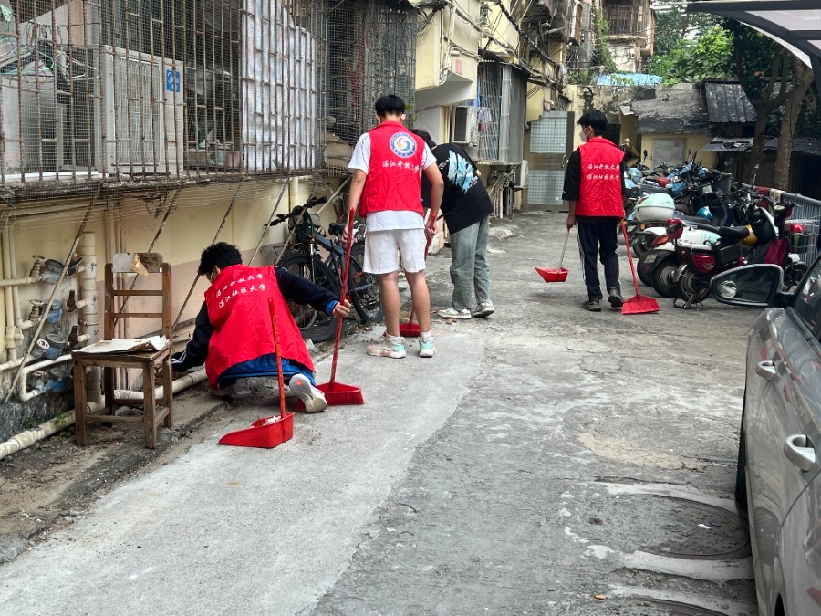 11月7日下午,我校思政教师和校团委组织学生志愿者走进社区、走上街道开展“青春志愿,爱在社区”为主题的清扫活动。此次活动旨在让学生亲身体验社会实践,增强社会责任感,提升综合素质,也是我校持续深化与实践教学基地(湛江市霞山区工农街道岭南社区)联动办学,为群众办实事的合作交流。