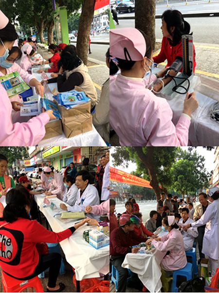 义诊由第四人民医院护理部主任谭建兰领队,邀请了糖尿病专家刘强副教授、内科及中医科专家主诊,为广大市民提供了包括测血压、血型、血糖、健康咨询、免费发放糖尿病、高血压等疾病防治知识资料等暖心服务,耐心细致的为市民进行了分析、讲解,并为到场市民提供了免费早餐。