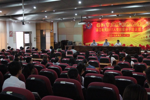 4月22日至23日,我校2017年入党积极分子培训班在校本部11楼学术报告厅开班,集中培训为期一天半。来自校本部、主校区和赤坎校区113名师生参加了培训。学校党委书记、校长李连红,副书记饶腊年,副校长尤祖国为学员上党课,进行了党的知识的教育,让学员了解党的性质、宗旨、纲领、指导思想、基本路线、方针政策和作风纪律,认识入党的程序和努力的方向,端正入党动机。