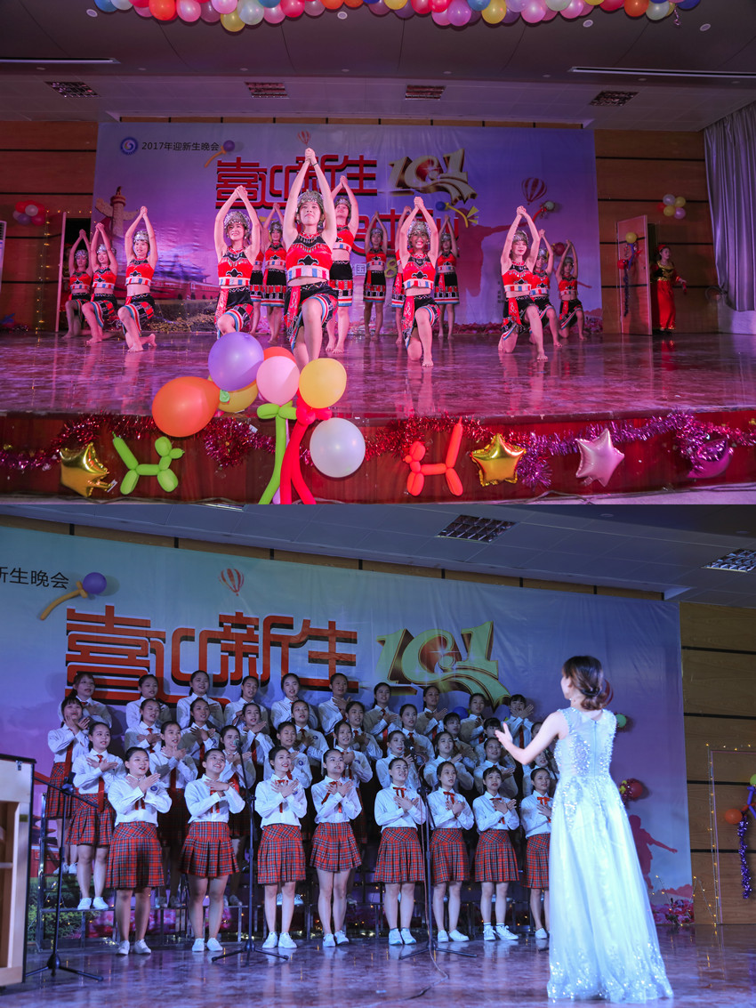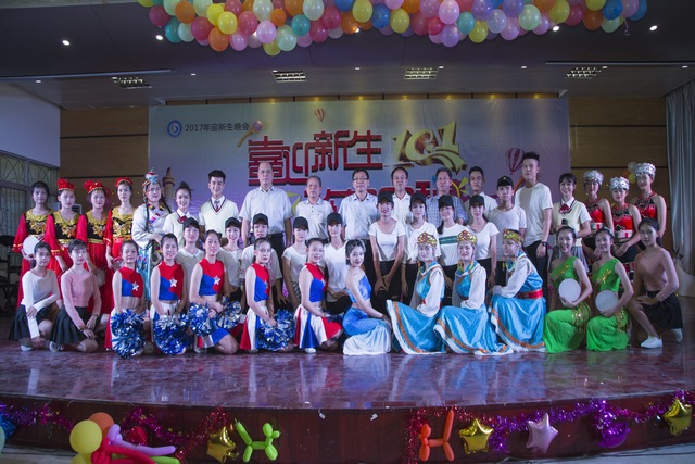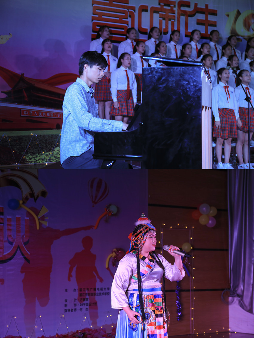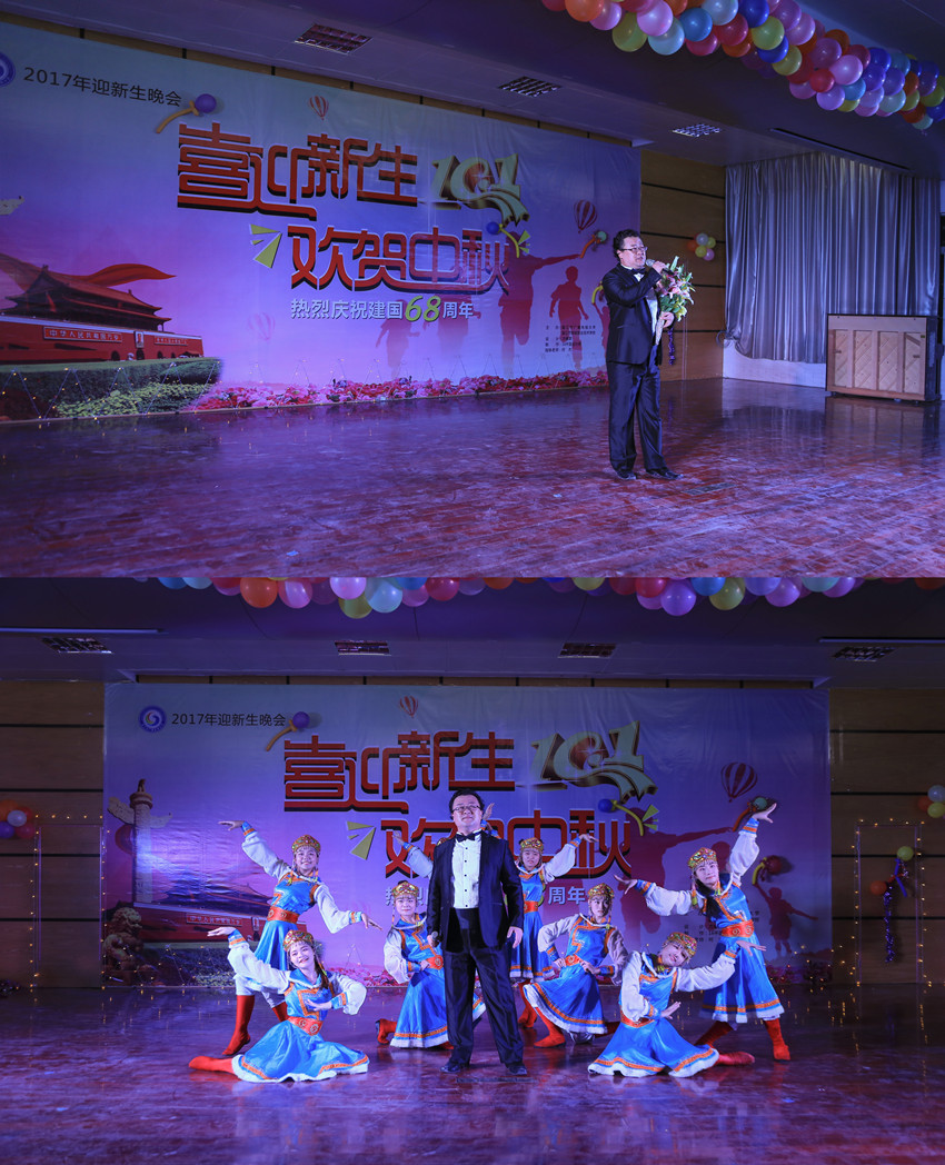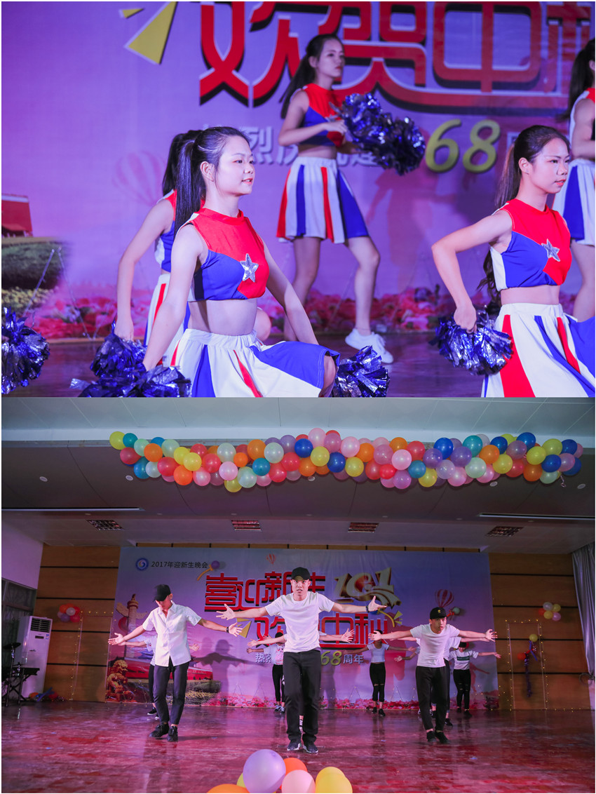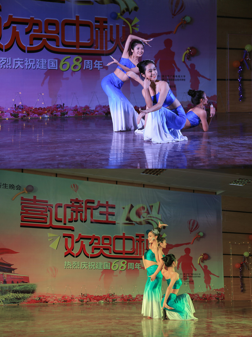 为欢迎2017级新生,庆祝伟大祖国68周年华诞,展现学校莘莘学子的风采,由湛江市广播电视大学和湛江市财政职业技术学校举办的"喜迎新生、欢贺中秋"文艺晚会于9月28日晚在主校区礼堂隆重举行。