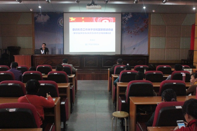 11月28日下午,湛江开放大学在11楼学术报告厅开展意识形态工作专题讲座。校党委书记、校长李连红作辅导授课,全体教职工参加了学习。