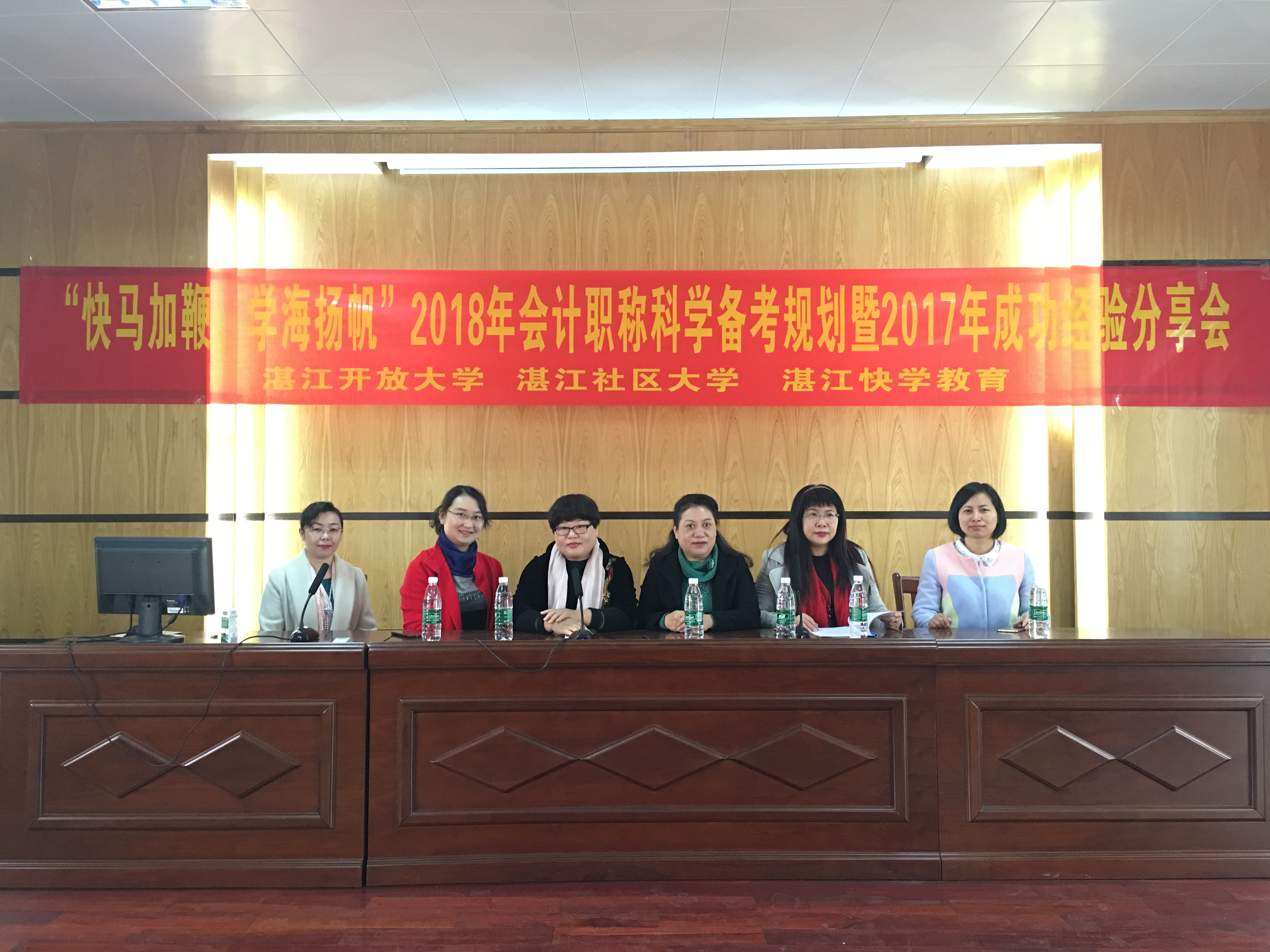 12月17日上午,湛江开放大学在校本部B501室举办"快马加鞭,学海扬帆"2018年会计职称科学备考规划暨2017年成功经验分享会。100余人参加听课,现场座无虚席,学生反应热烈。