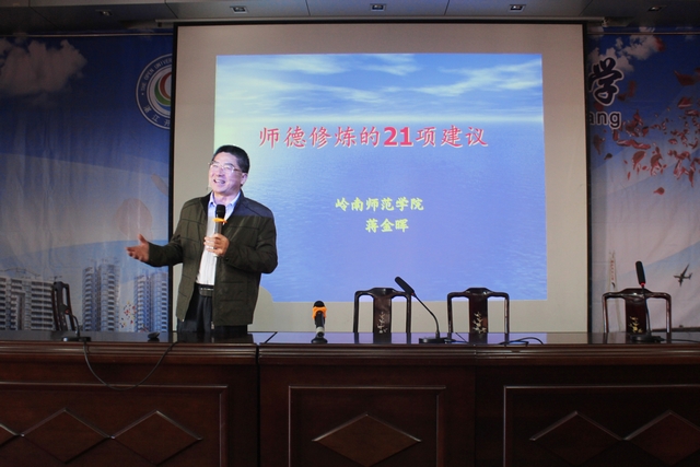 1月17日下午,岭南师范学院蒋金晖教授受邀到湛江开放大学作了以"师德修炼的21项建议"为主题的讲座。湛江开放大学党委书记、校长李连红主持并讲话。全体教职工参加了讲座。