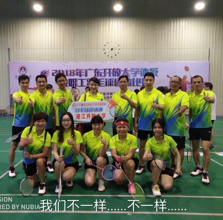 5月19日,由广东开放大学工会主办,佛山开放大学承办的"2018年广东开放大学体系教职工羽毛球团体比赛"在佛山举行,湛江开放大学系统运动健将本着"友谊第一,比赛第二"的原则,团结协作,拼搏进取,挥洒汗水,享受比赛的乐趣,充分展现了湛江开大系统员工奋勇争先的精神面貌。